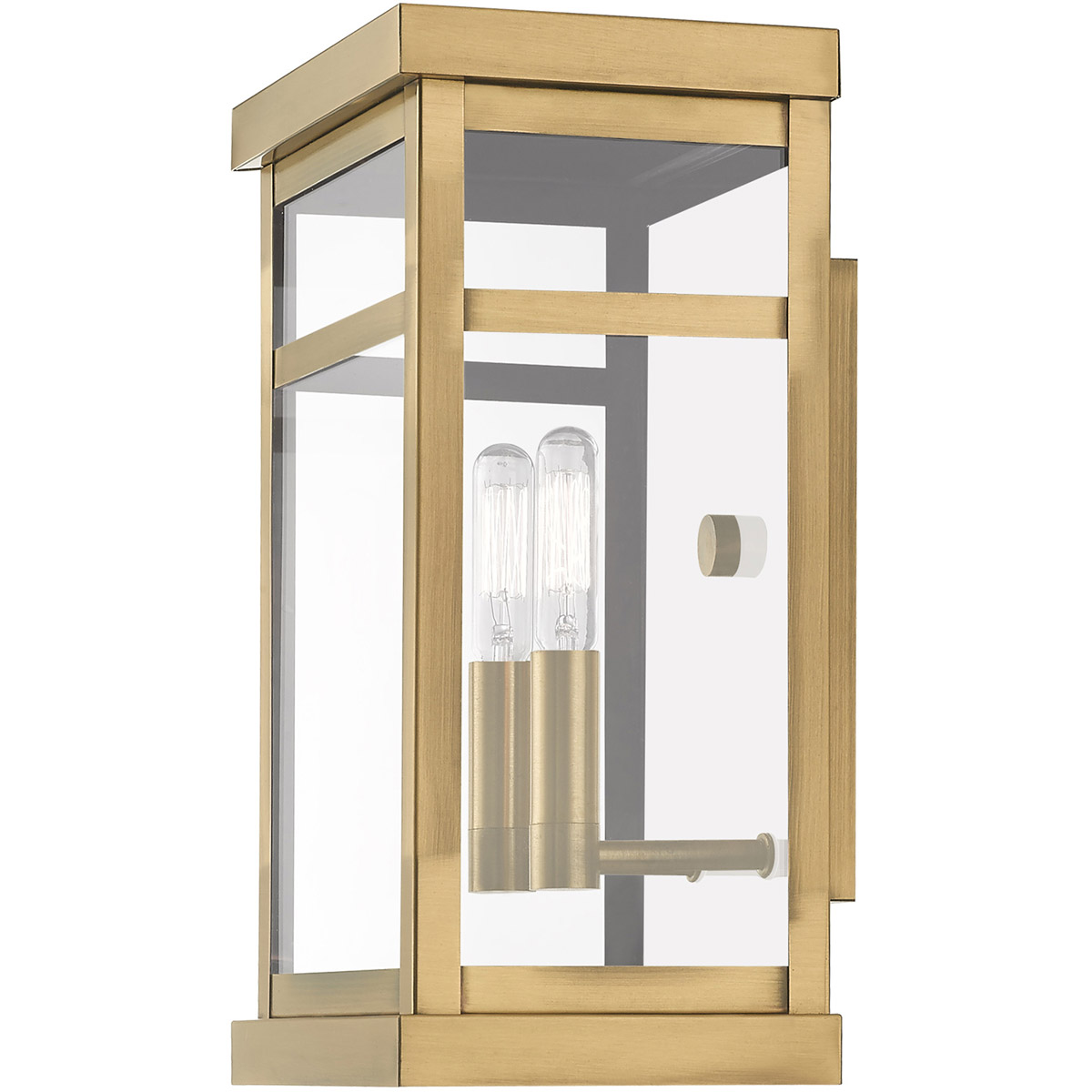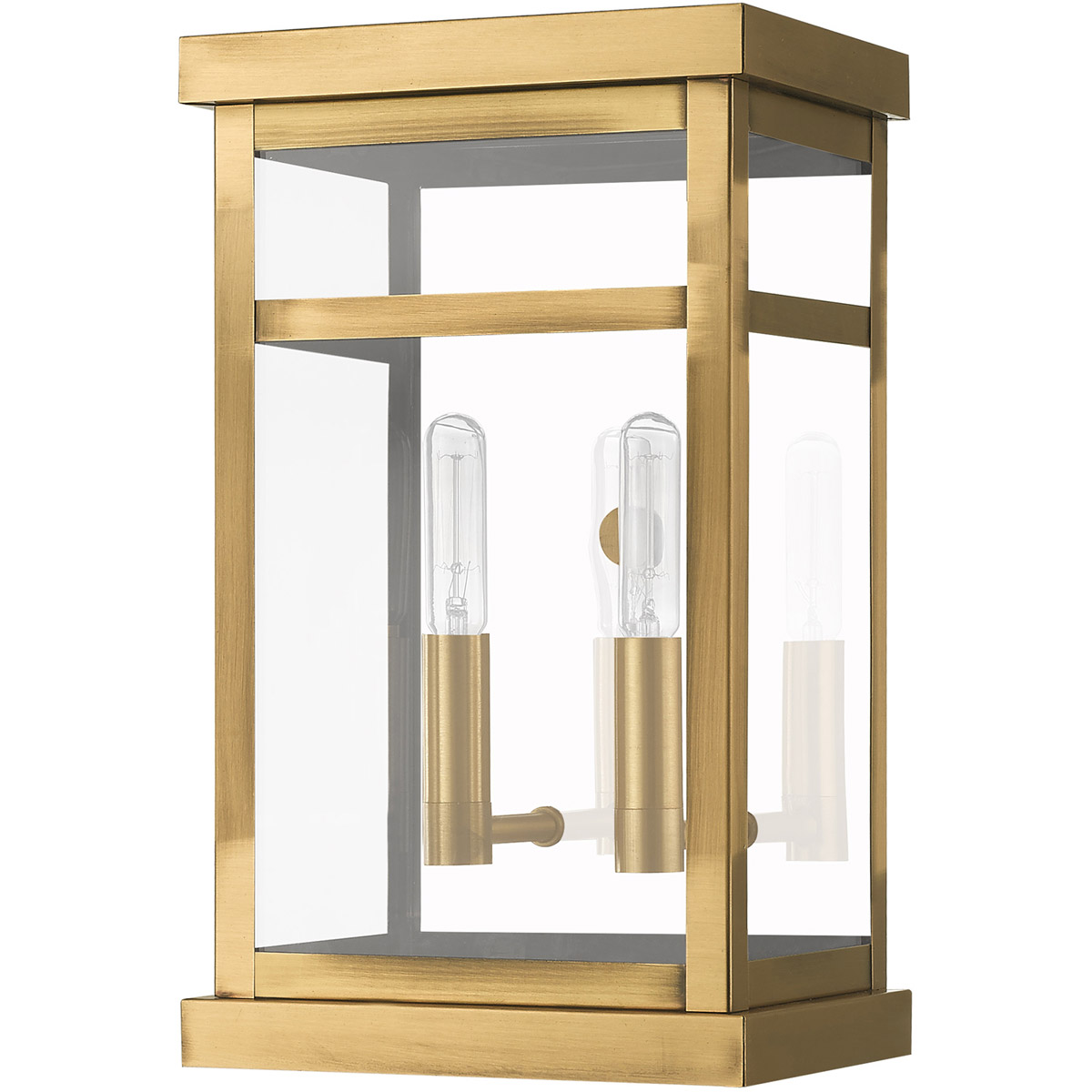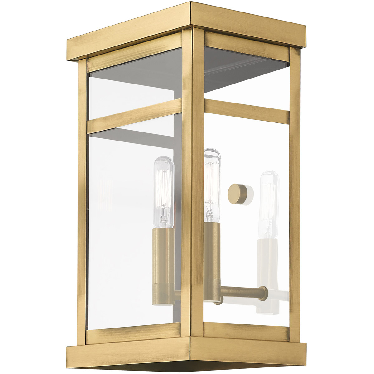 The design of the Hopewell outdoor wall lantern will give your home a modern reception. Featured in a antique brass finish, the polished stainless steel back wall gives an illusion of a double light effect.