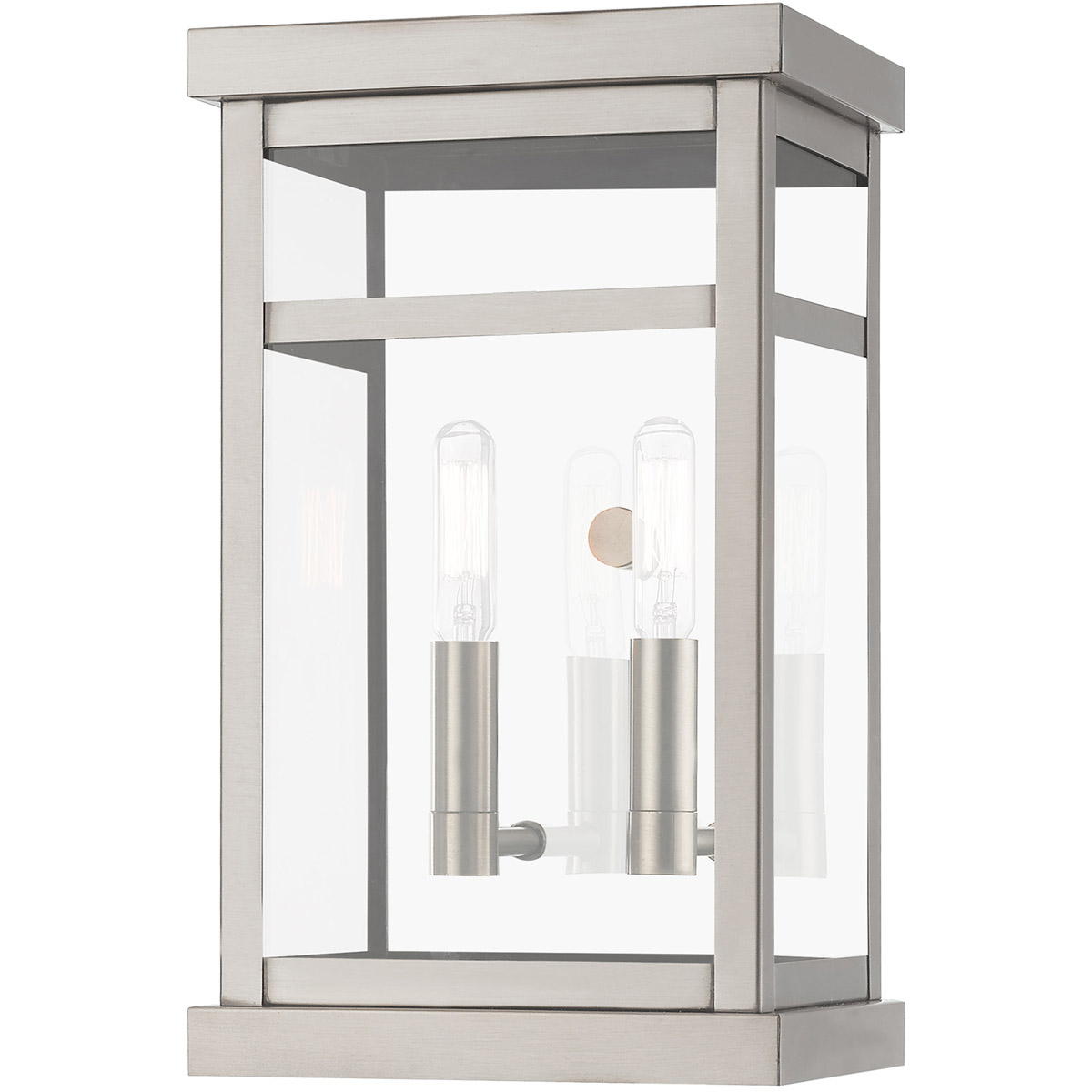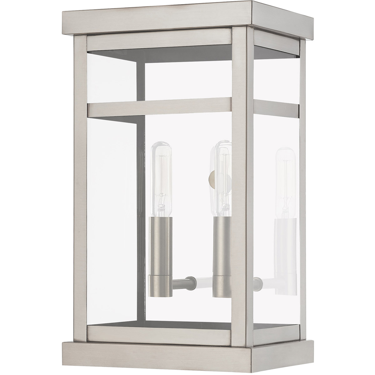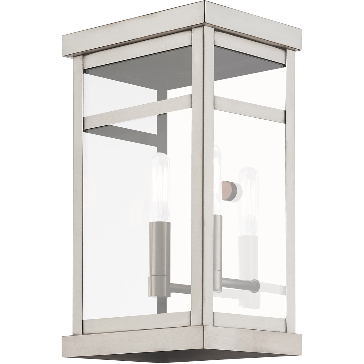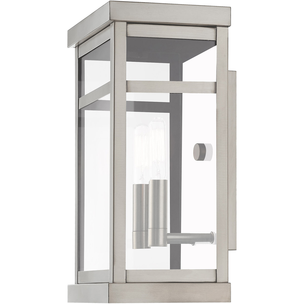 The design of the Hopewell outdoor wall lantern will give your home a modern reception. Featured in a brushed nickel finish, the polished stainless steel back wall gives an illusion of a double light effect.