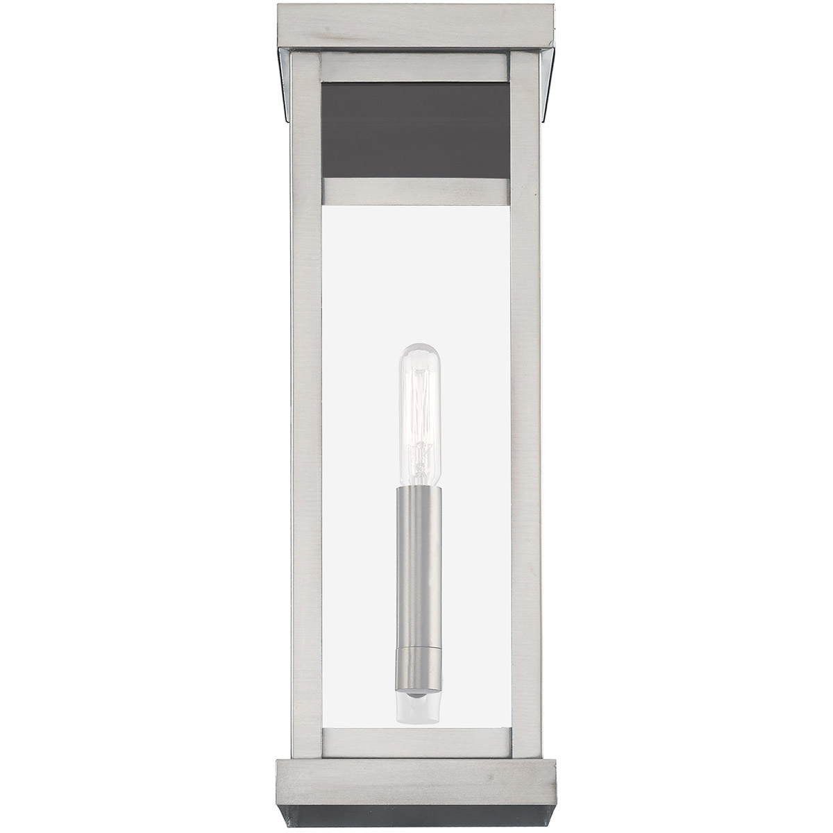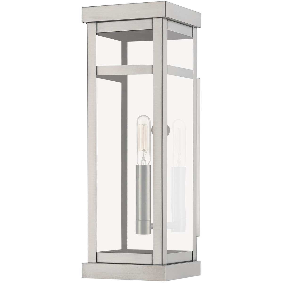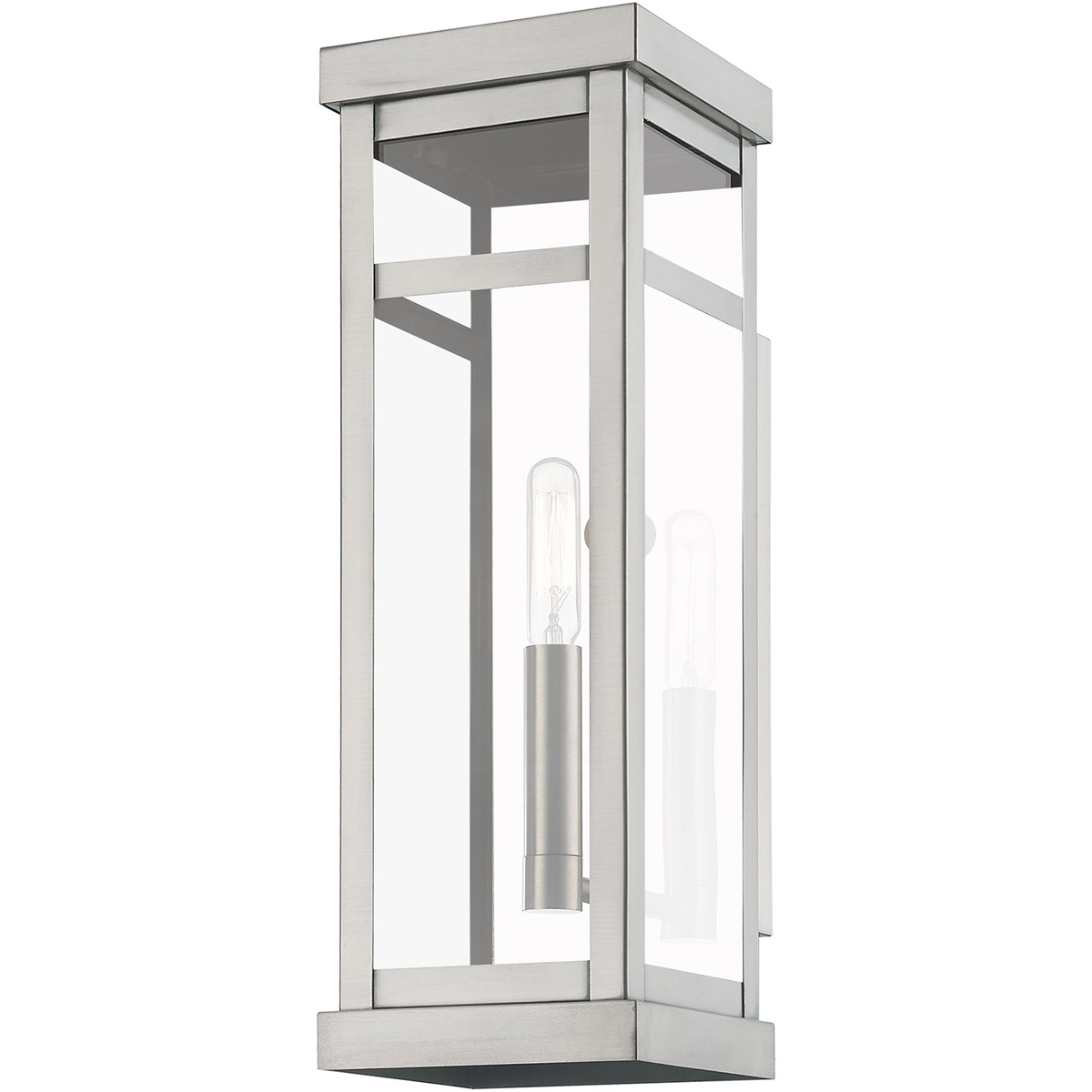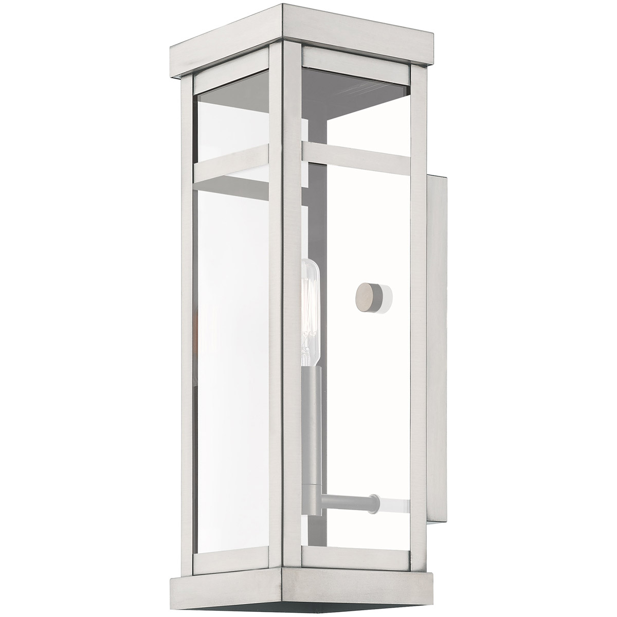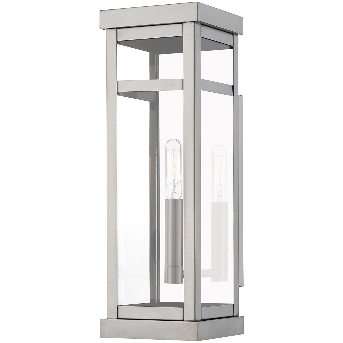 The design of the Hopewell outdoor wall lantern will give your home a modern reception. Featured in a brushed nickel finish, the polished stainless steel back wall gives an illusion of a double light effect.