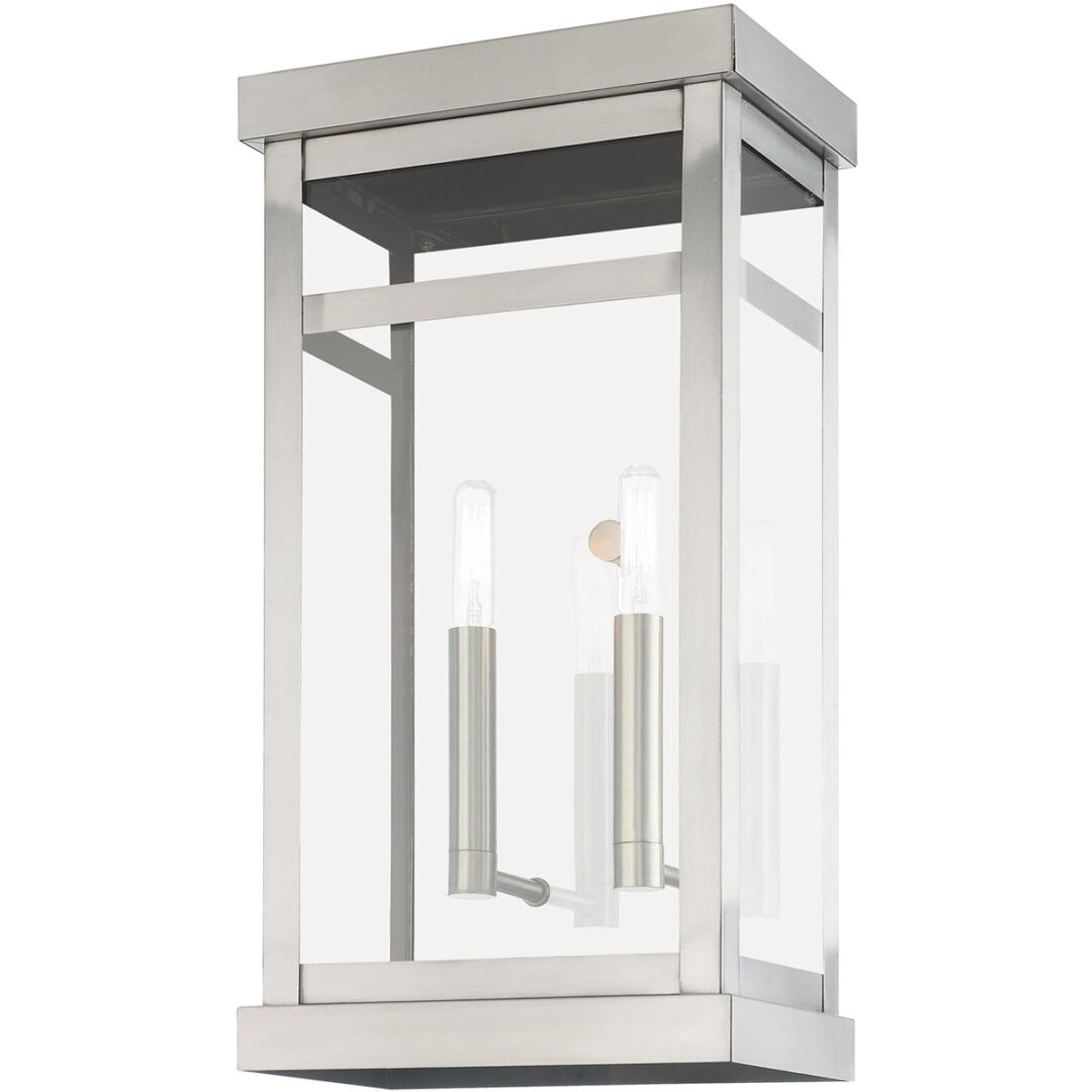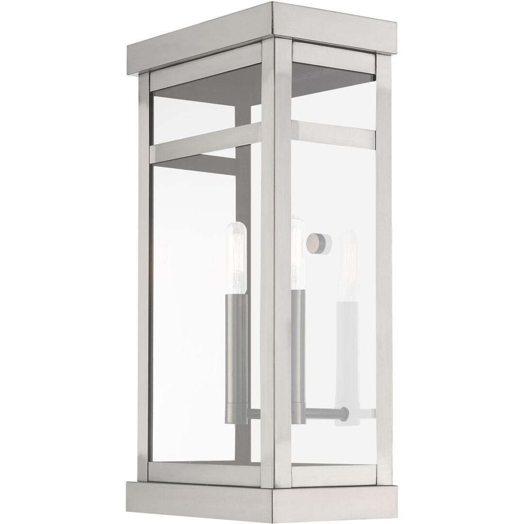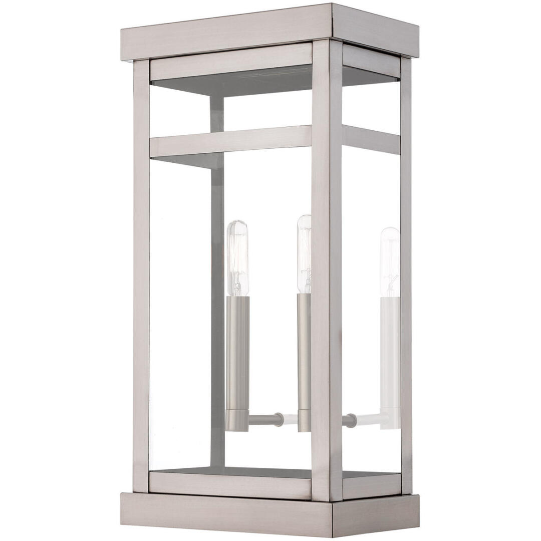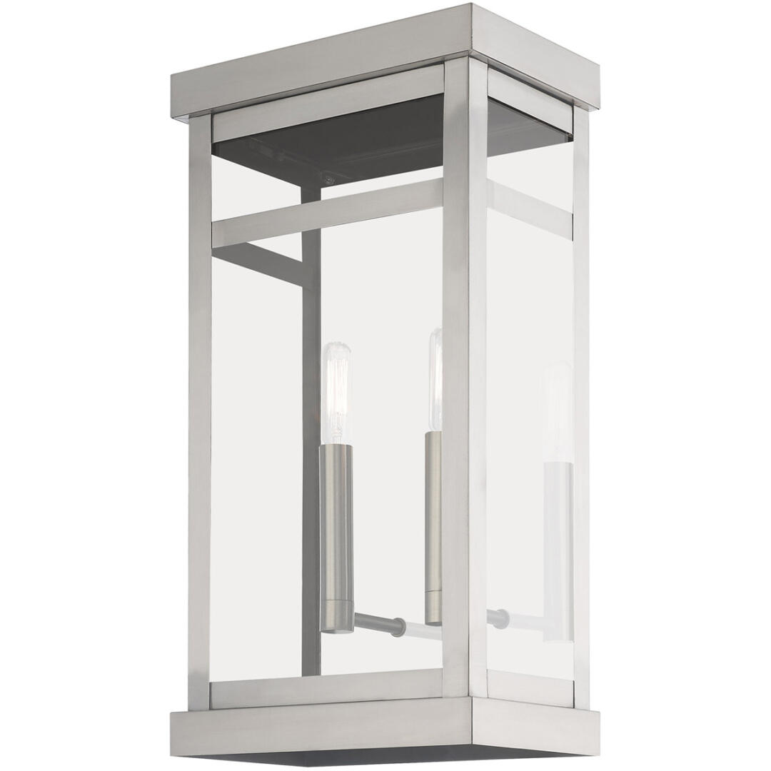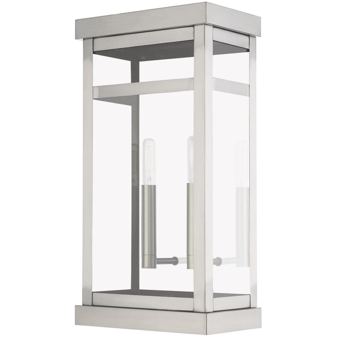 The design of the Hopewell outdoor wall lantern will give your home a modern reception. Featured in a brushed nickel finish, the polished stainless steel back wall gives an illusion of a double light effect.