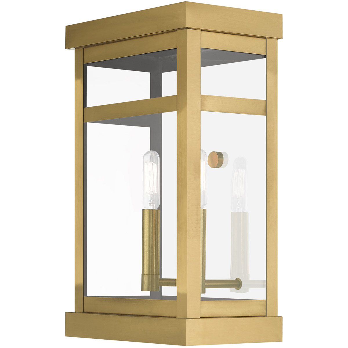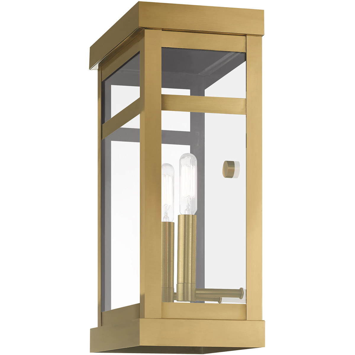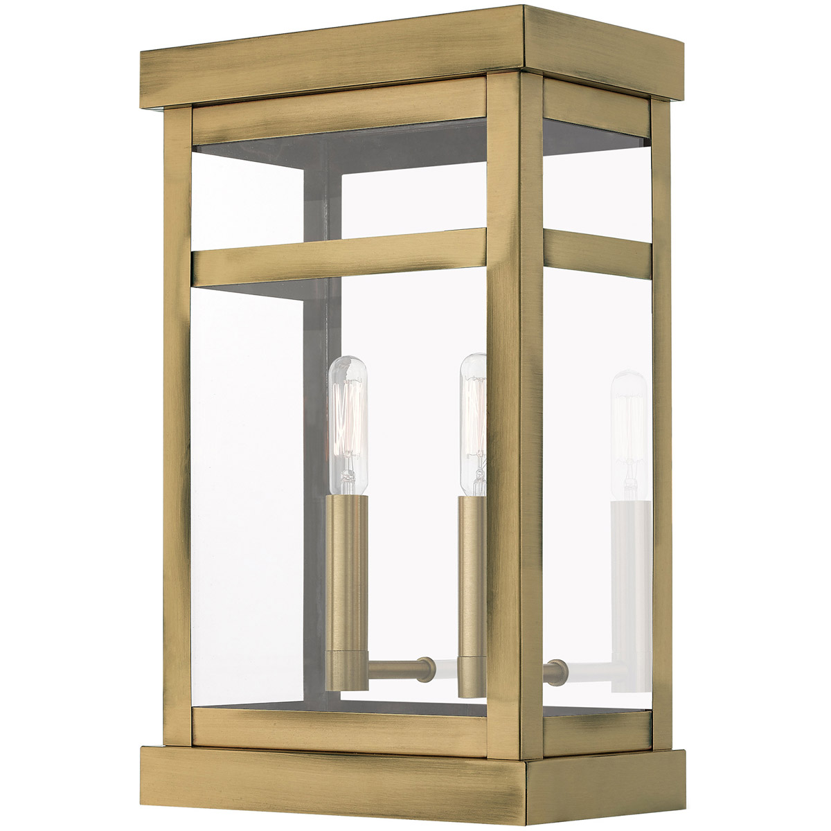 The design of the Hopewell outdoor wall lantern will give your home a modern reception. Featured in a antique brass finish, the polished stainless steel back wall gives an illusion of a double light effect.