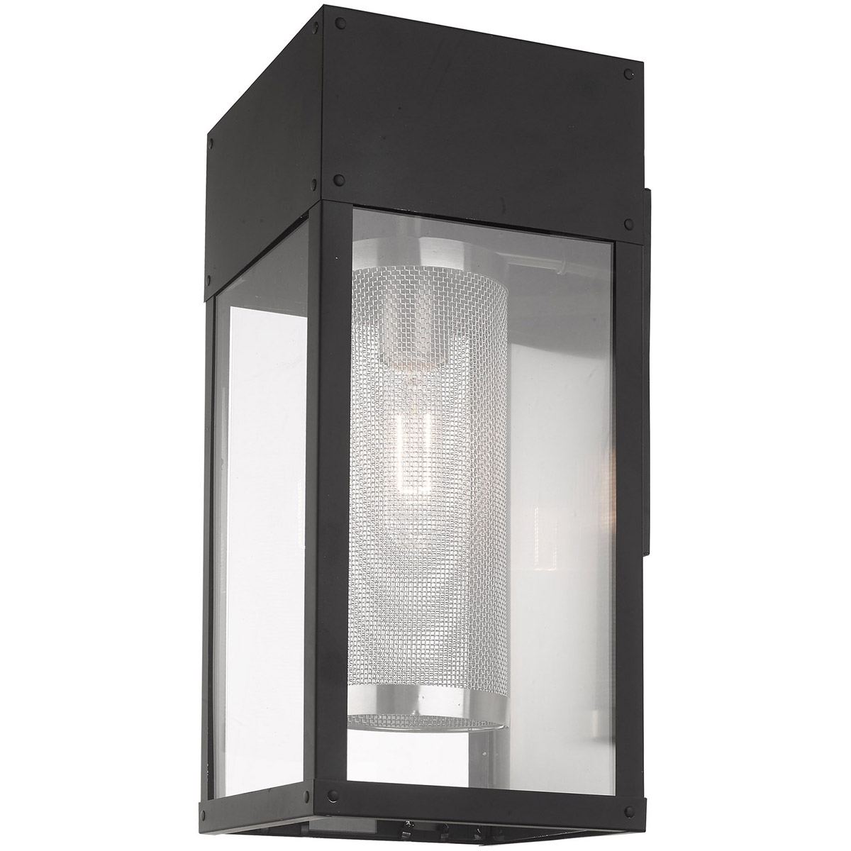 The stainless steel build of the Franklin outdoor wall lantern will ensure reliability outside your home. The black finish is neutral and decorative, and will complement outer clear glass. The inside stainless steel mesh cylinder is the distinct detail in the design, and offers an eye-catching aspect to the appearance.
