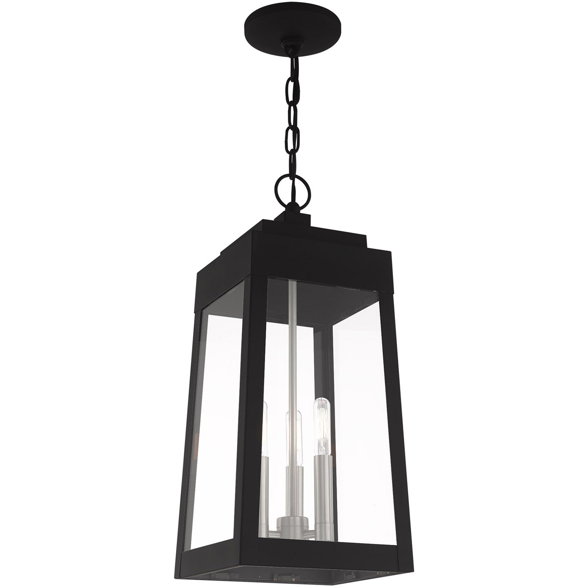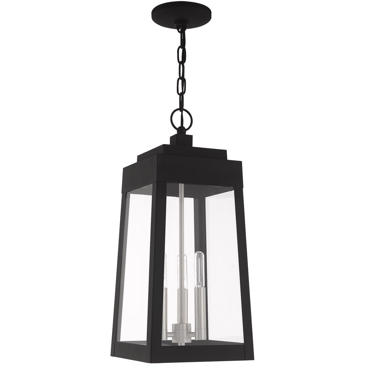 8.25 inch 3 Light Black Outdoor Pendant Lantern with Clear Glass Shade-Lighting LumensLantern