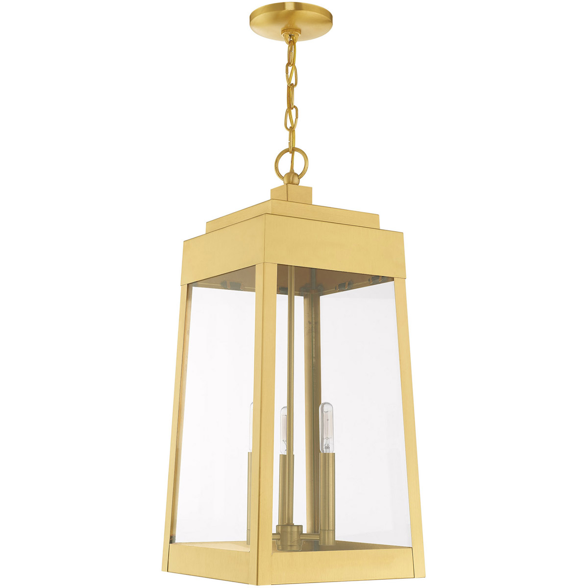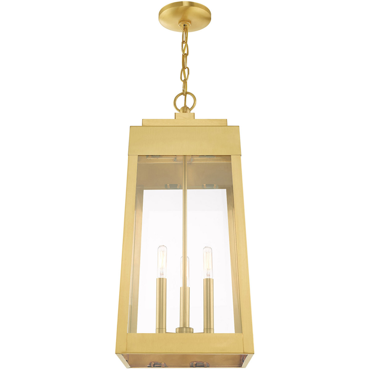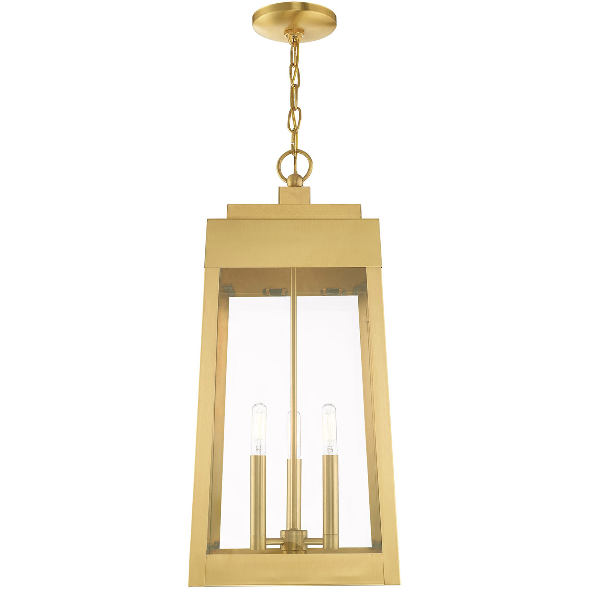 10.5 inch 3 Light Satin Brass Outdoor Pendant Lantern with Clear Glass Shade-Lighting Lumens