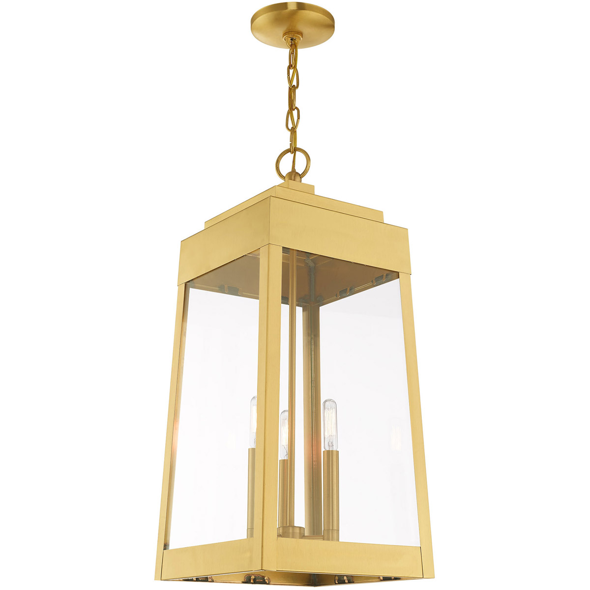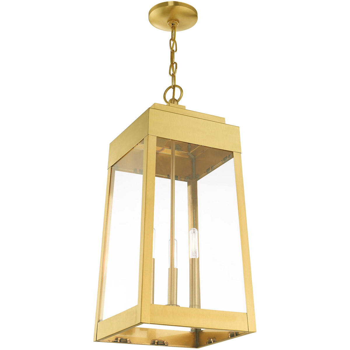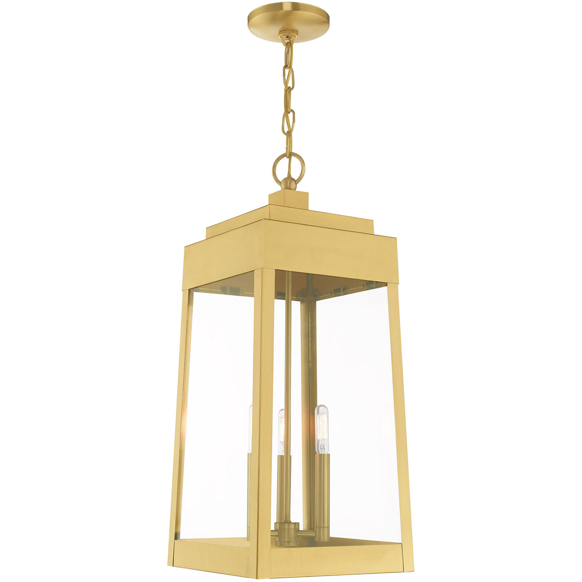 10.5 inch 3 Light Satin Brass Outdoor Pendant Lantern with Clear Glass Shade-Lighting Lumens