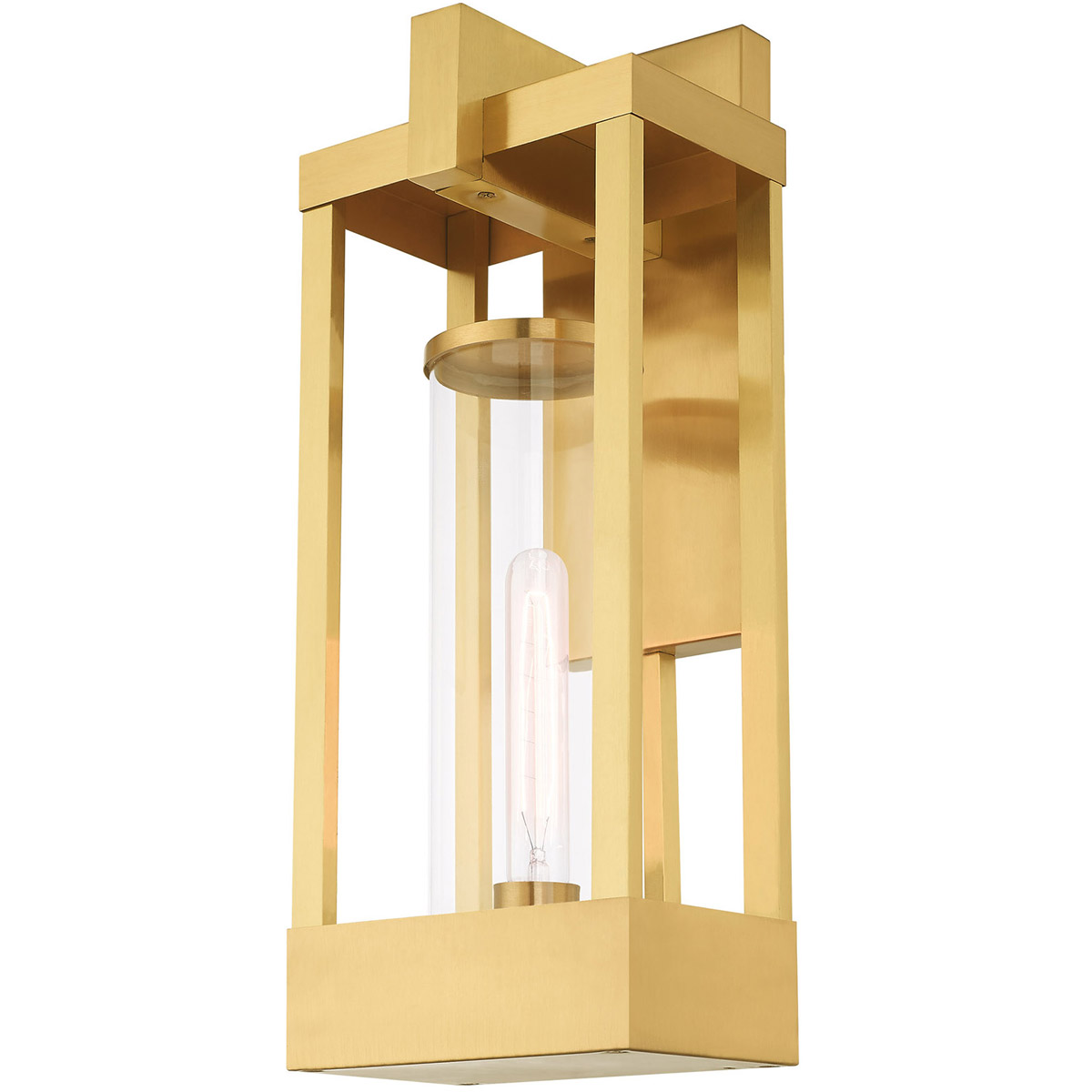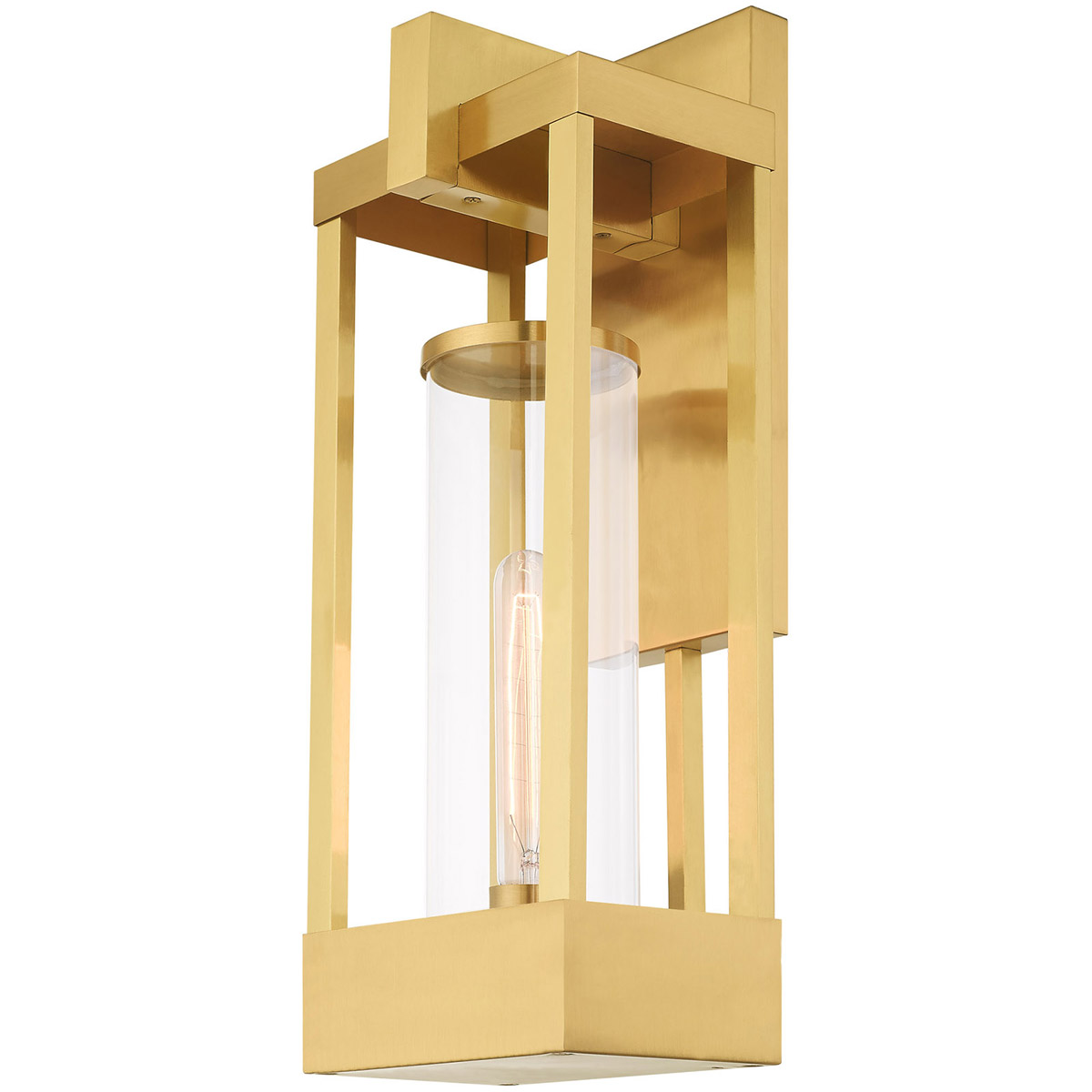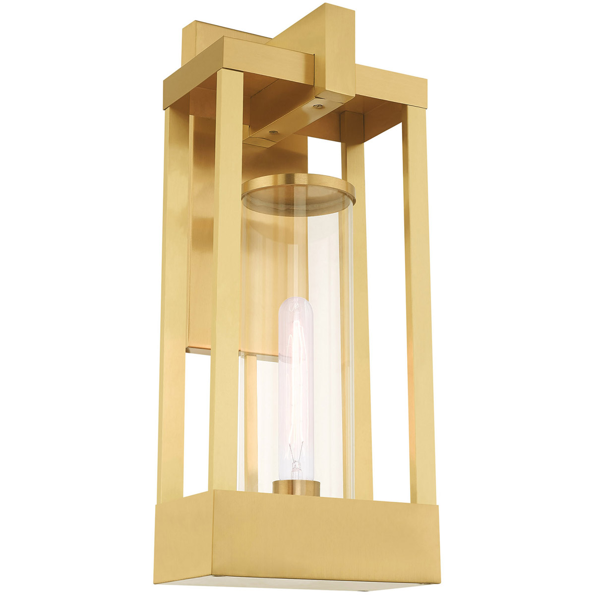 From the Delancey collection comes this handsome outdoor wall lantern which features a satin brass finished outer frame over solid brass. Inside, a clear glass cylinder can show case a single vintage style Edison bulb. Together, they create a wall lantern that is worth your attention