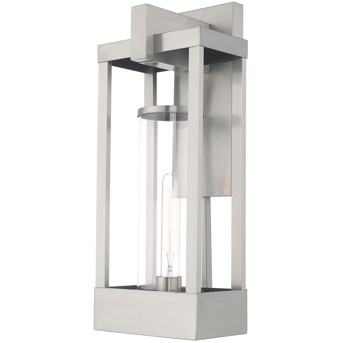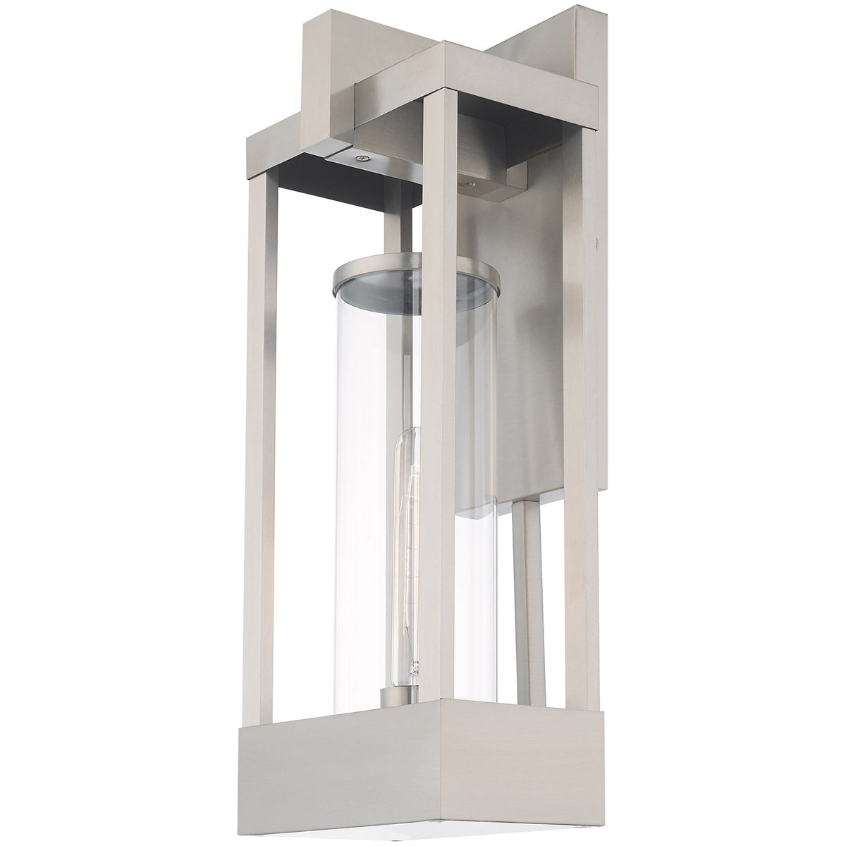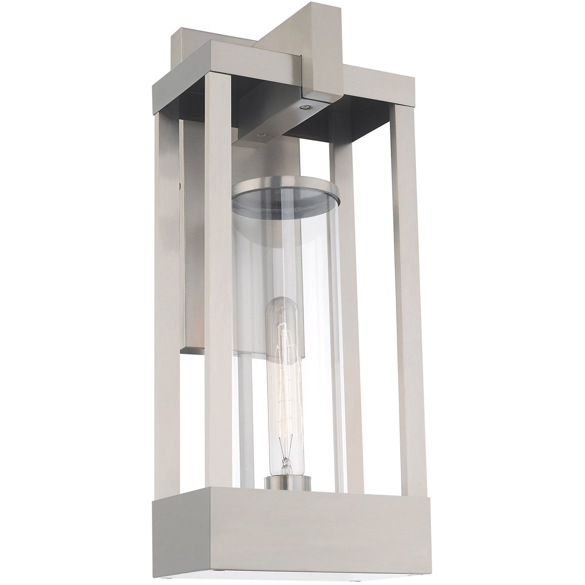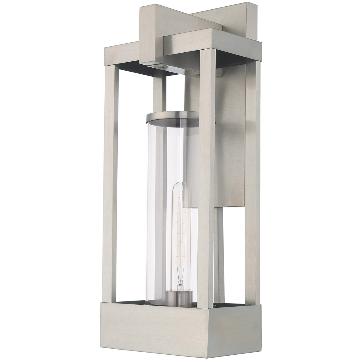 From the Delancey collection comes this handsome outdoor wall lantern which features a brushed nickel finished outer frame over solid brass. Inside, a clear glass cylinder can show case a single vintage style Edison bulb. Together, they create a wall lantern that is worth your attention