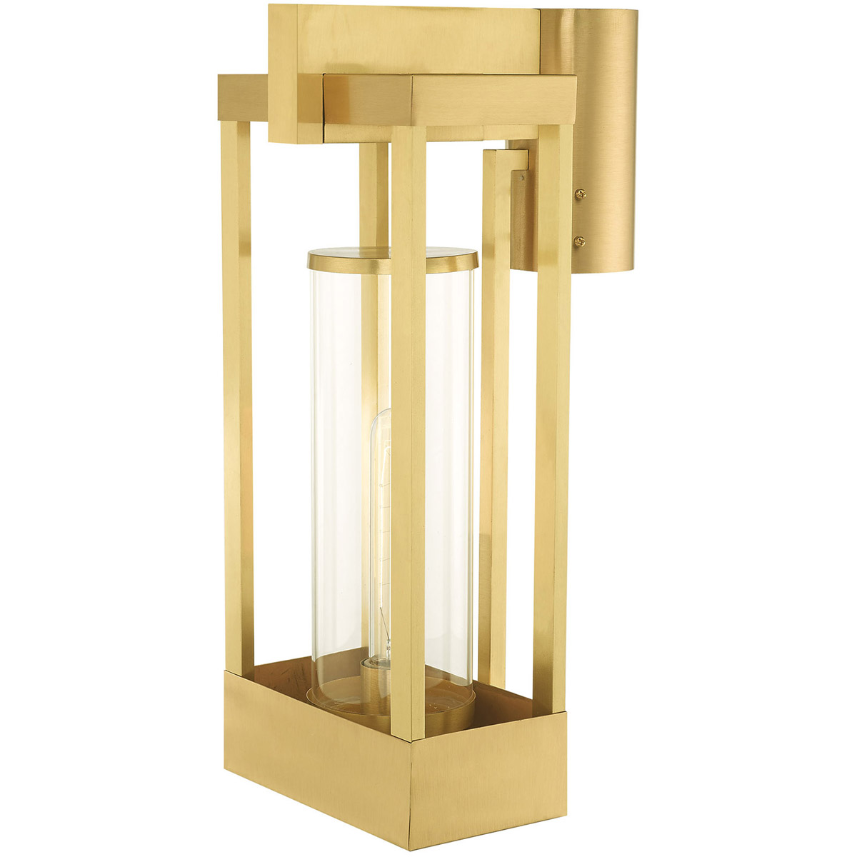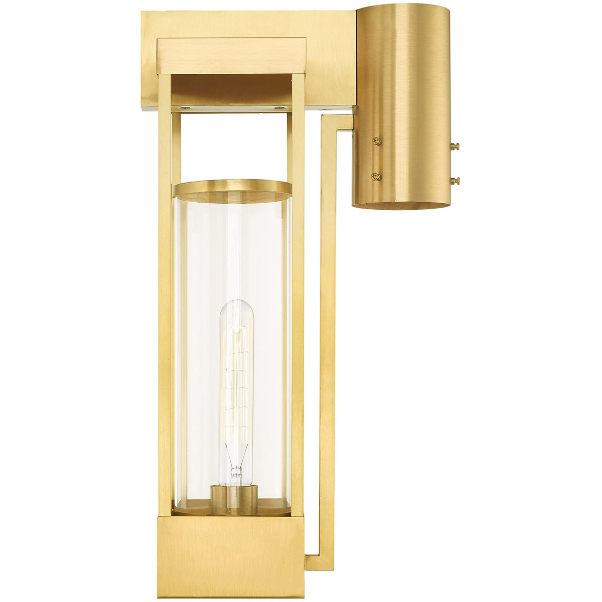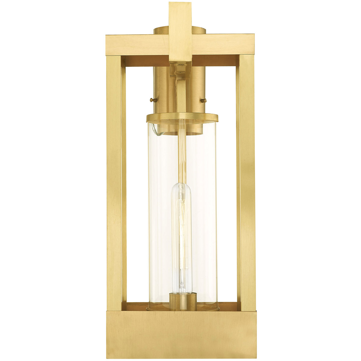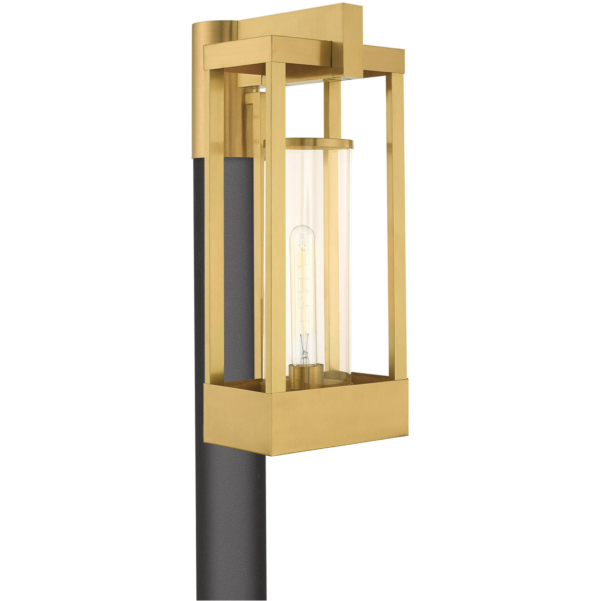 From the Delancey collection comes this handsome outdoor post top lantern which features a satin brass finished outer frame over solid brass. Inside, a clear glass cylinder can show case a single vintage style Edison bulb. Together, they create a post top lantern that is worth your attention