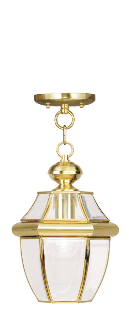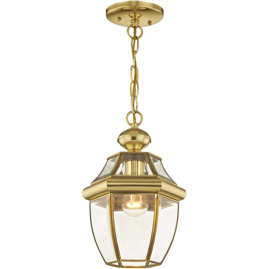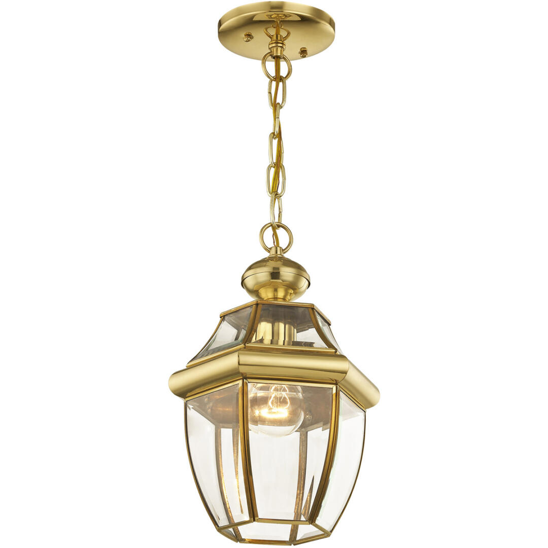 1 Light Polished Brass Outdoor Chain Lantern Pendant Lighting Fixture with Clear Beveled Glass Shade-Lighting Lumens