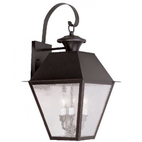 With stunning seeded glass and a bronze finish, this outdoor wall lantern will make an elegant addition to any outdoor space. Formed from solid brass & traditionally-inspired, this downward hanging outdoor wall lantern is perfect for a driveway, back porch or entry way.