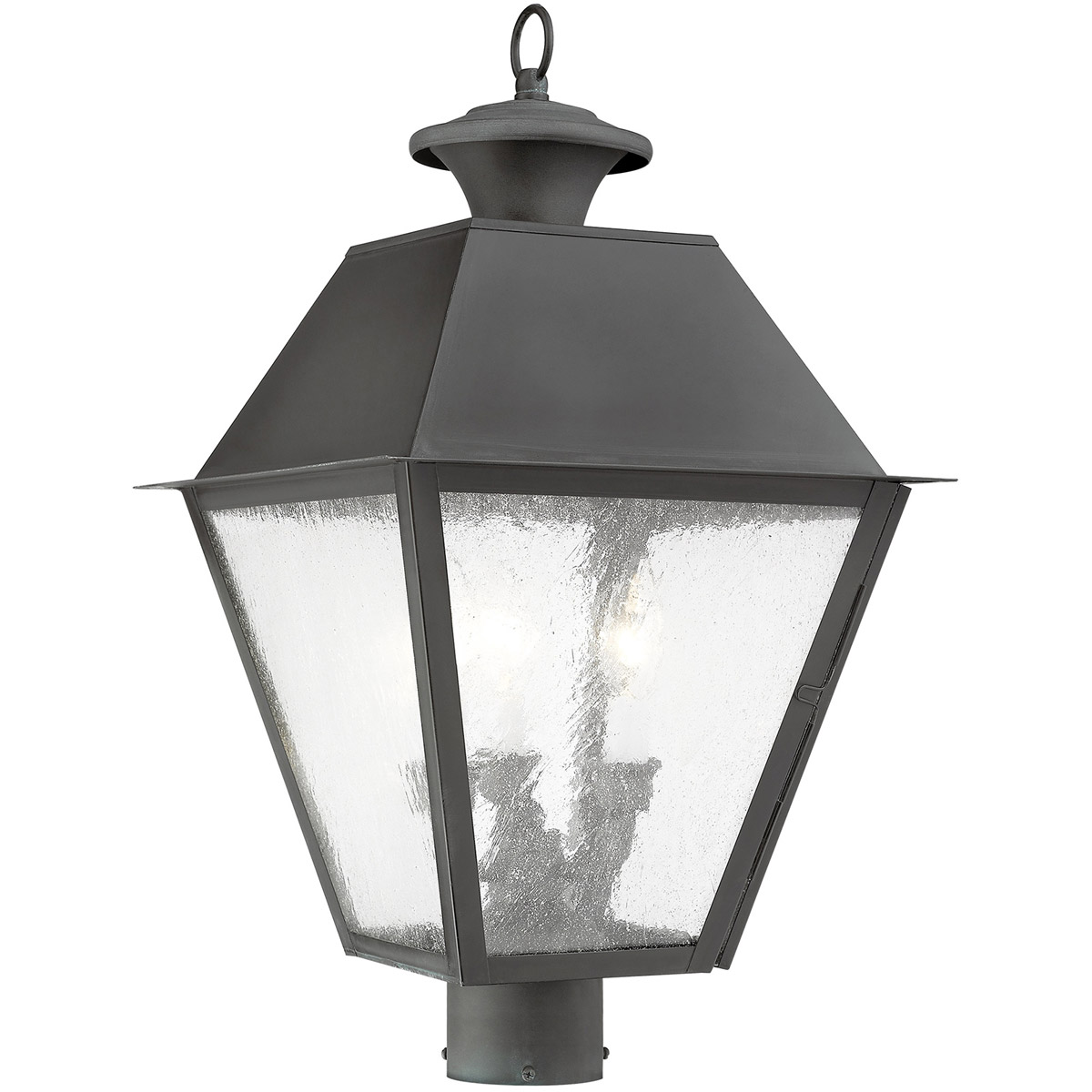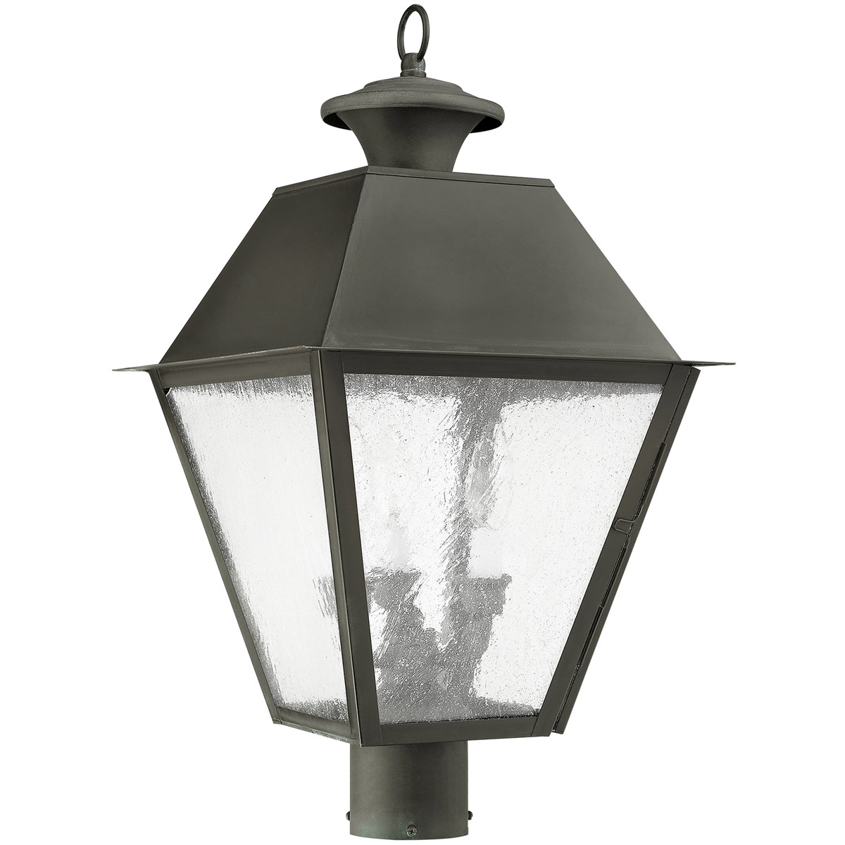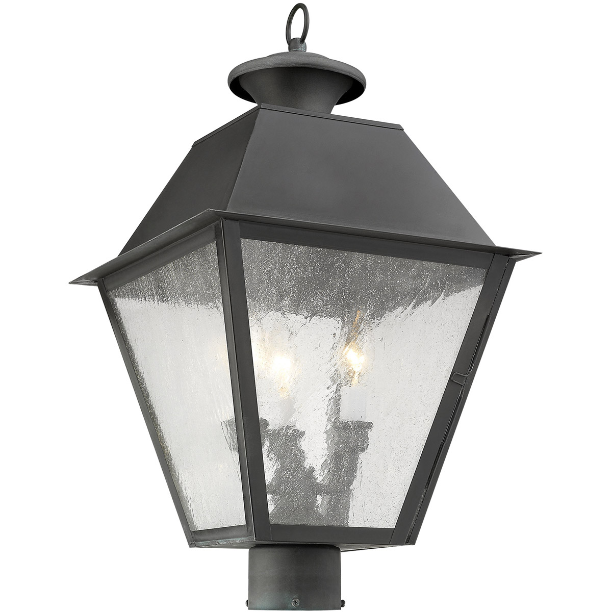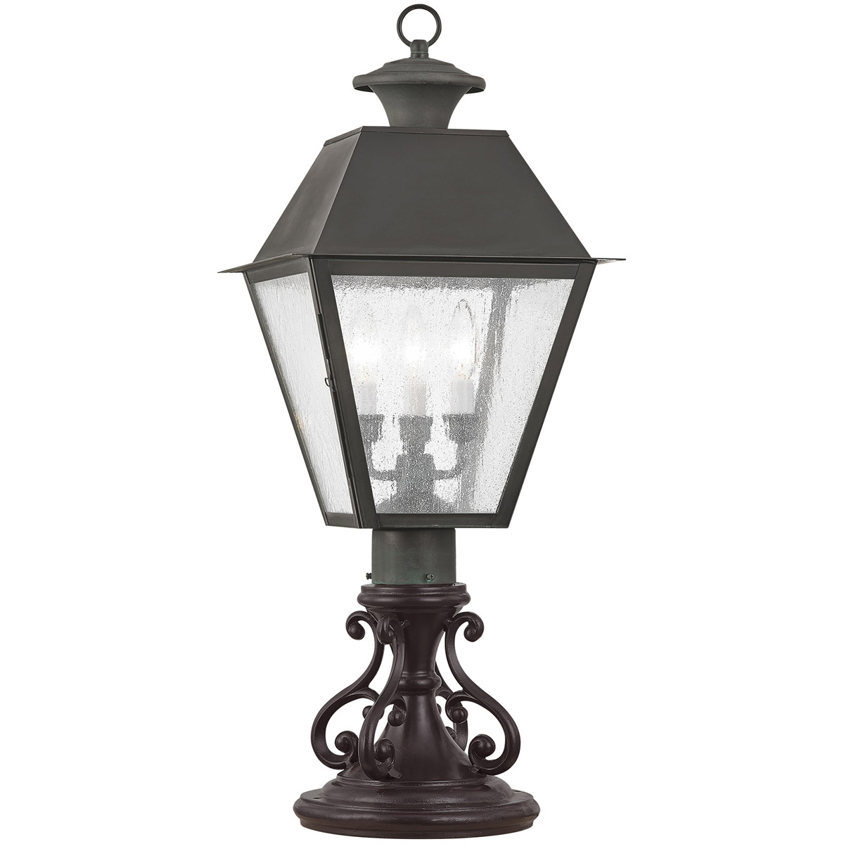 With stunning seeded glass and a charcoal finish, this outdoor post lantern will make an elegant addition to any outdoor space. Formed from solid brass & traditionally-inspired, this outdoor post lantern is perfect for a driveway, back porch or entry way.