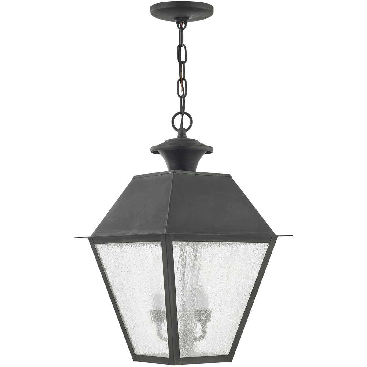 With stunning seeded glass and a charcoal finish, this outdoor hanging lantern will make an elegant addition to any outdoor space. Formed from solid brass & traditionally-inspired, this hanging outdoor lantern is perfect for a back porch or entry way.