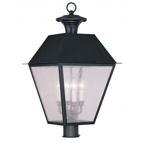 With stunning seeded glass and a black finish, this outdoor post lantern will make an elegant addition to any outdoor space. Formed from solid brass & traditionally-inspired, this outdoor post lantern is perfect for a driveway, back porch or entry way.