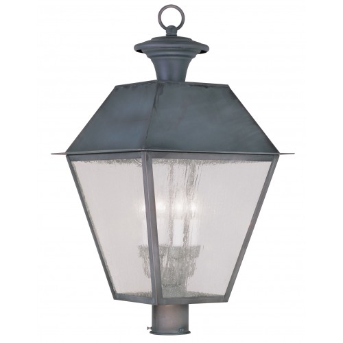 With stunning seeded glass and a charcoal finish, this outdoor post lantern will make an elegant addition to any outdoor space. Formed from solid brass & traditionally-inspired, this outdoor post lantern is perfect for a driveway or back porch.
