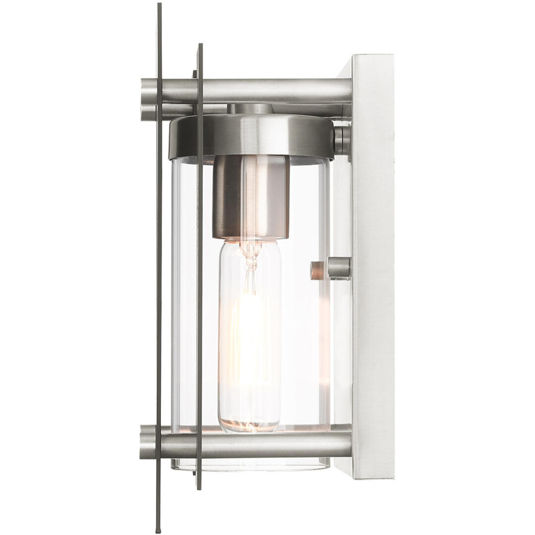 Featuring a solid brass frame with a glass cylinder, the Utrecht outdoor wall lantern is ideal for your front door or side entrance. The black finish with brushed nickel accents offers a complimenting counterpart while still keeping the glam factor of the overall fixture.