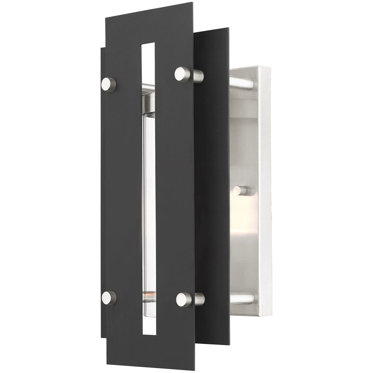 Featuring a solid brass frame with a glass cylinder, the Utrecht outdoor wall lantern is ideal for your front door or side entrance. The black finish with brushed nickel accents offers a complimenting counterpart while still keeping the glam factor of the overall fixture.
