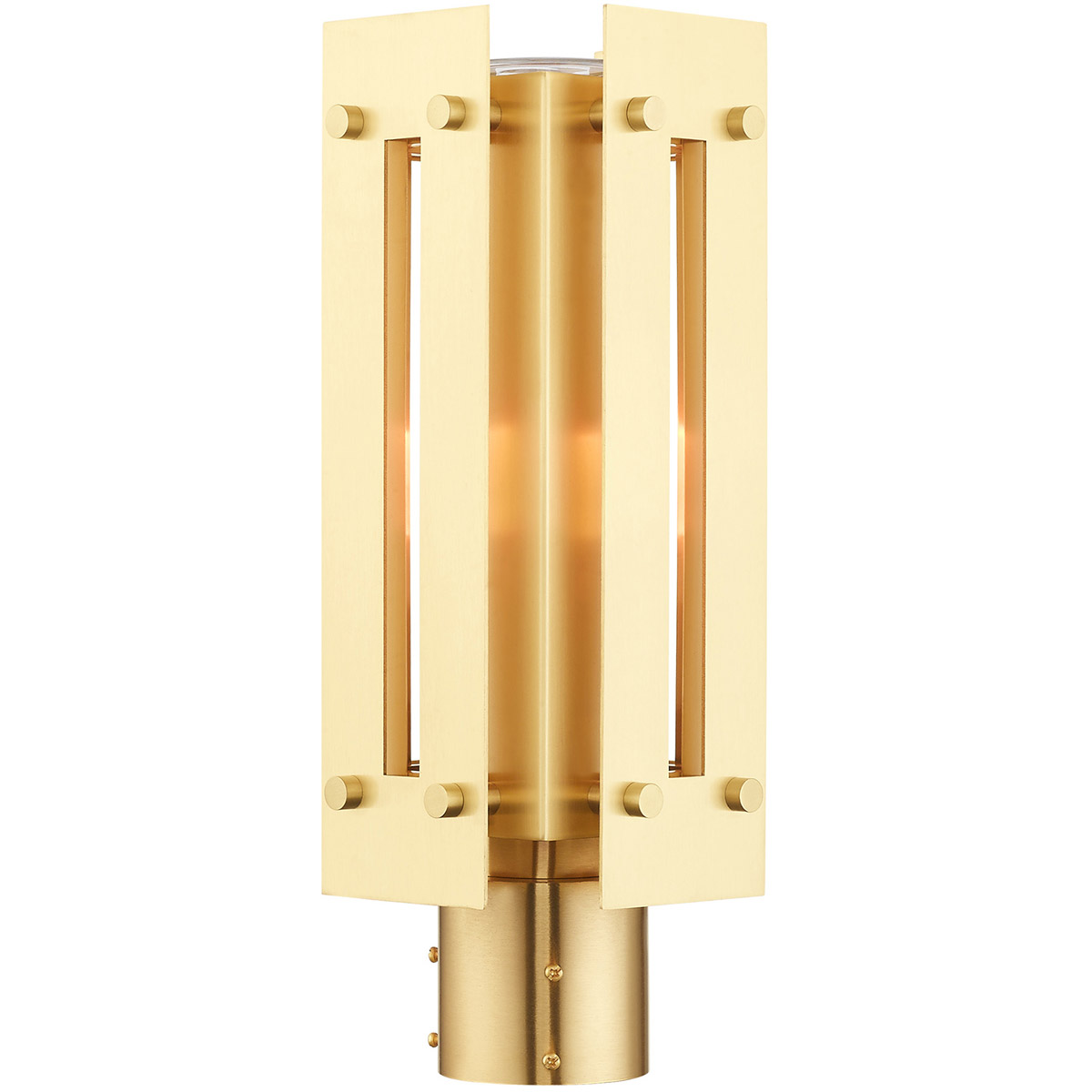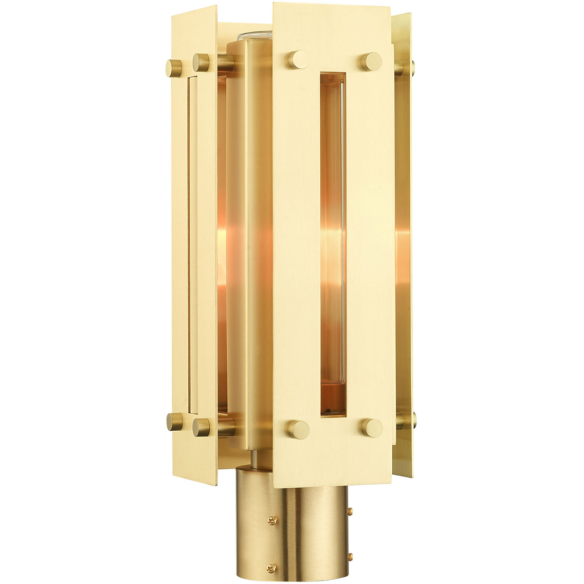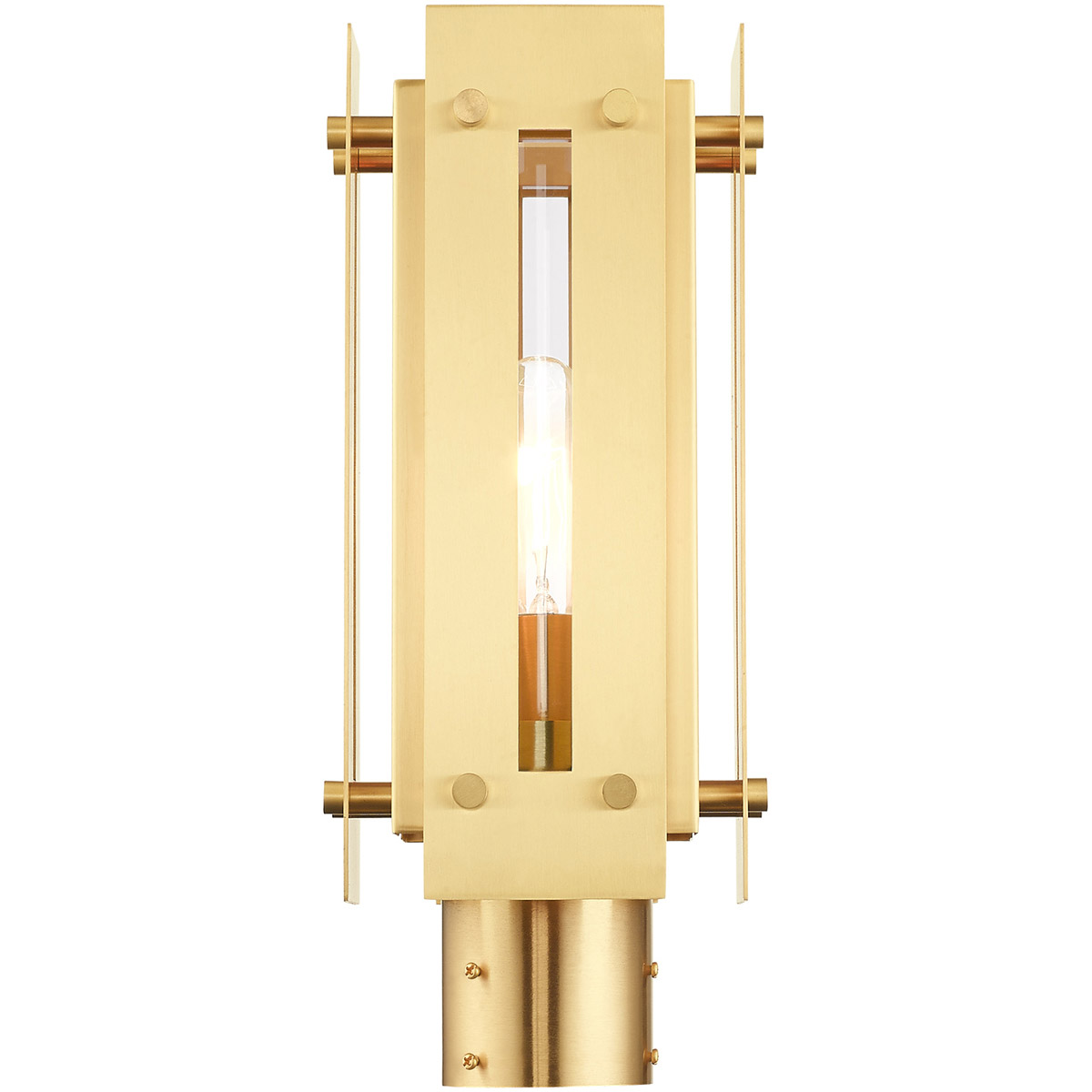 Featuring a solid brass frame with a glass cylinder, the Utrecht outdoor post top lantern is ideal for your front walkway or backyard. The warm, satin brass finish offers a complimenting counterpart while still keeping the glam factor of the overall fixture.