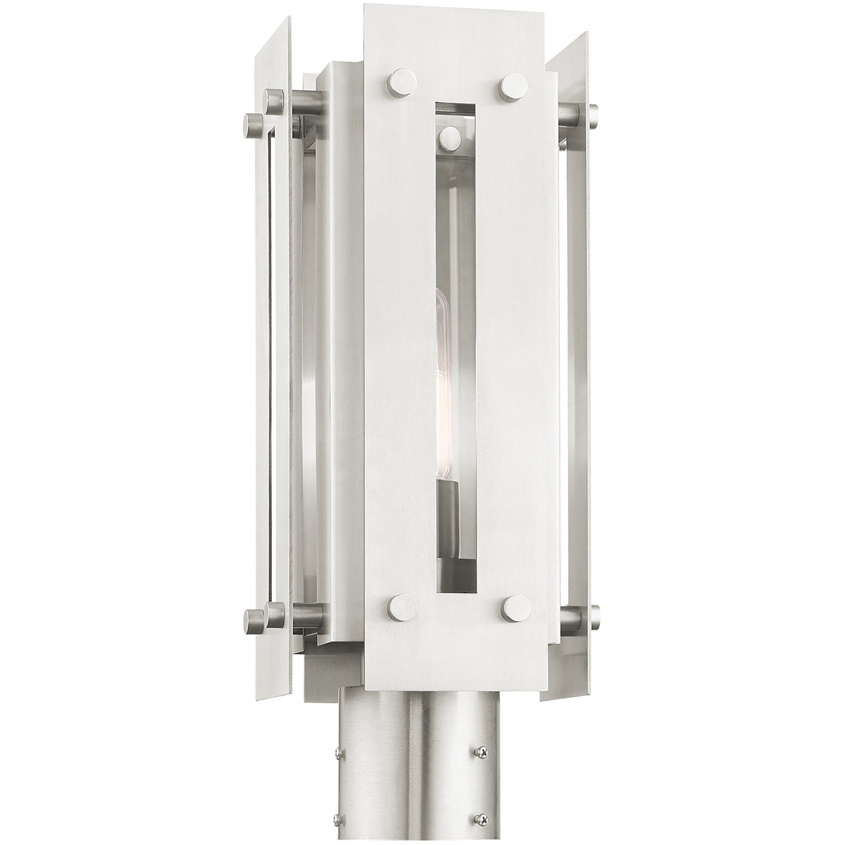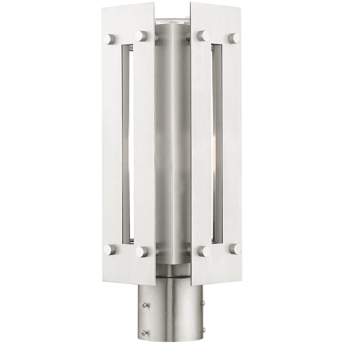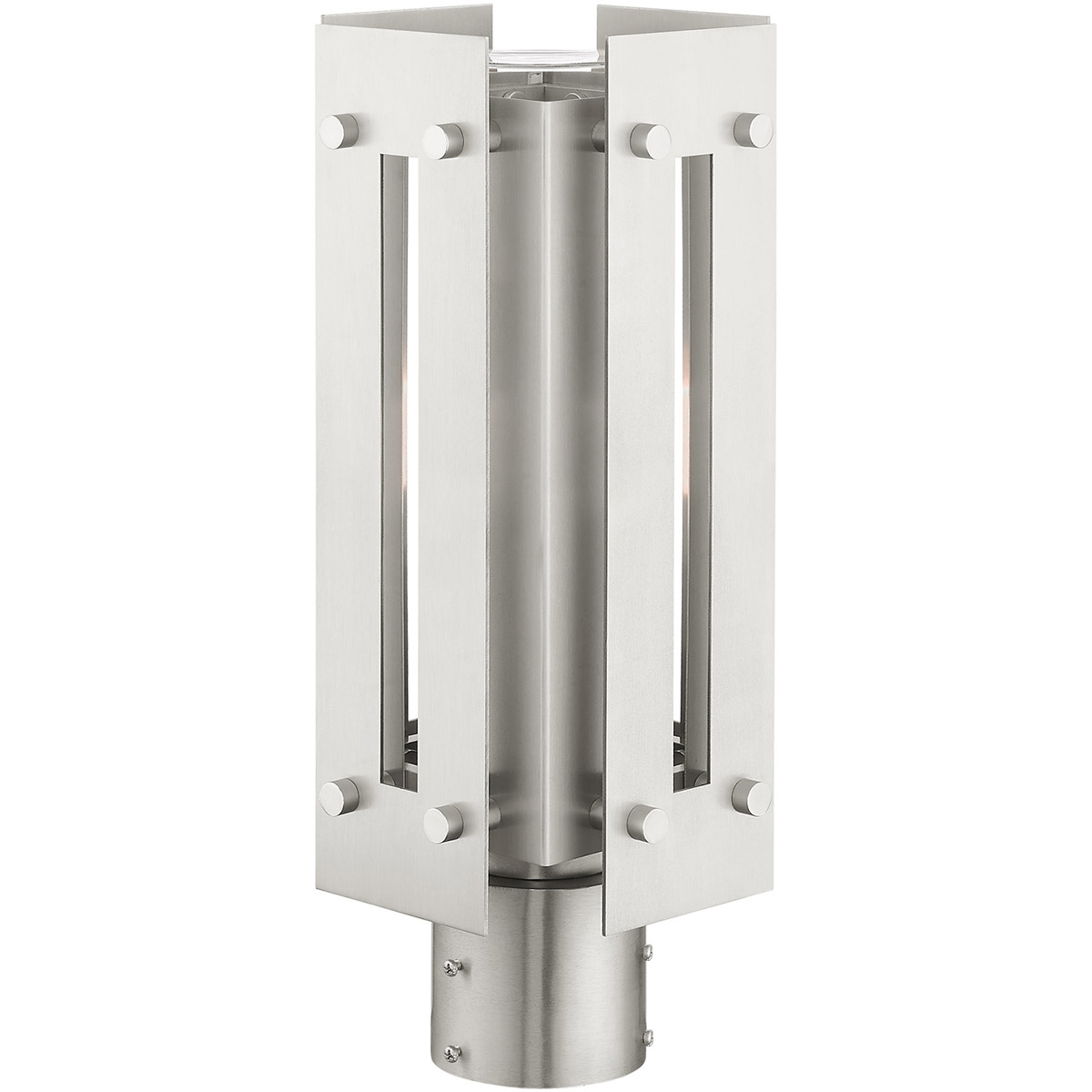 Featuring a solid brass frame with a glass cylinder, the Utrecht outdoor post top lantern is ideal for your front walkway or backyard. The brushed nickel finish offers a complimenting counterpart while still keeping the glam factor of the overall fixture.
