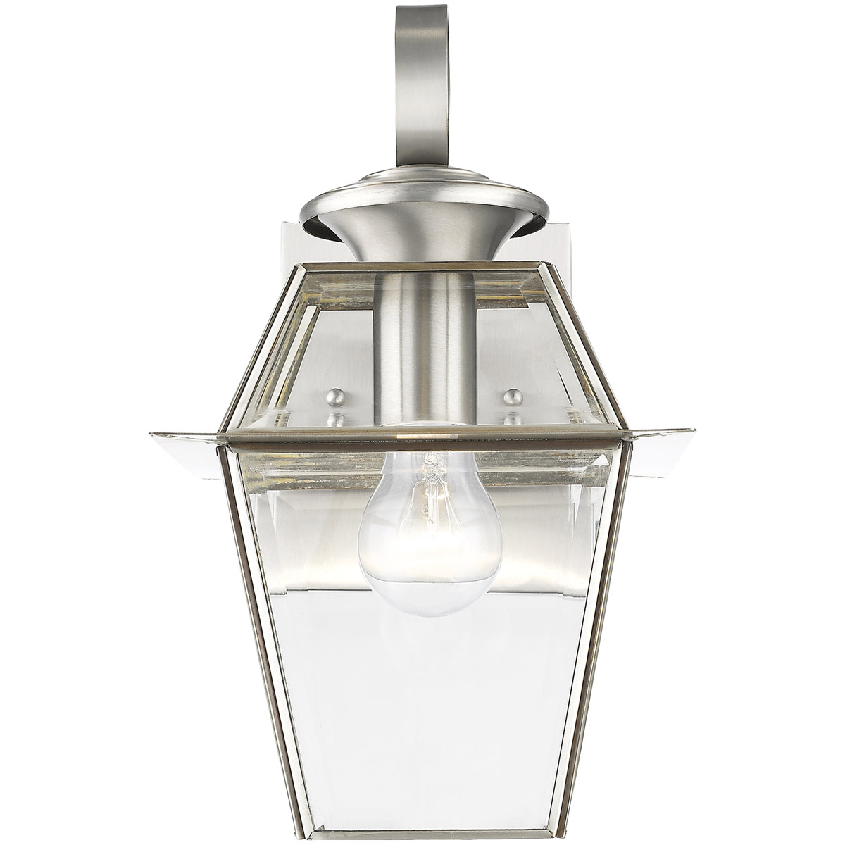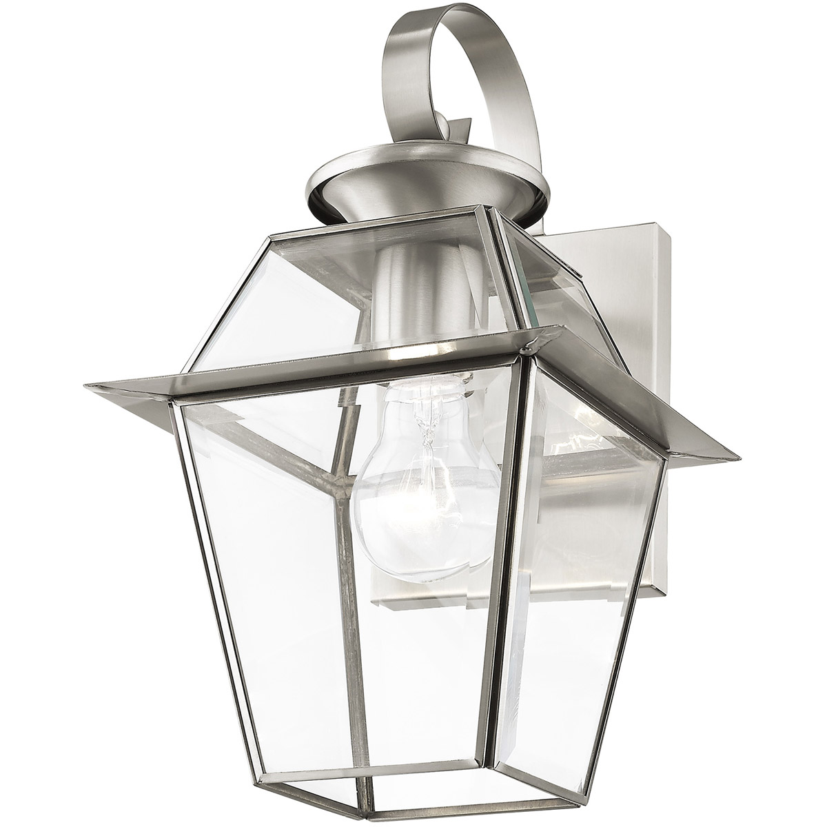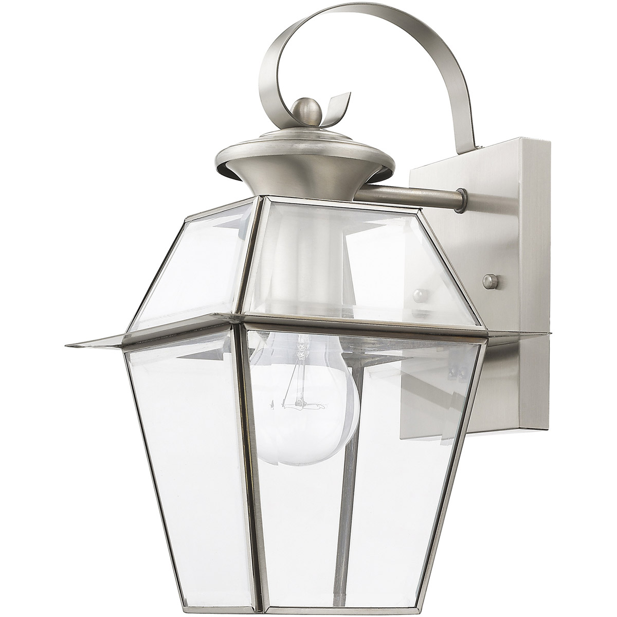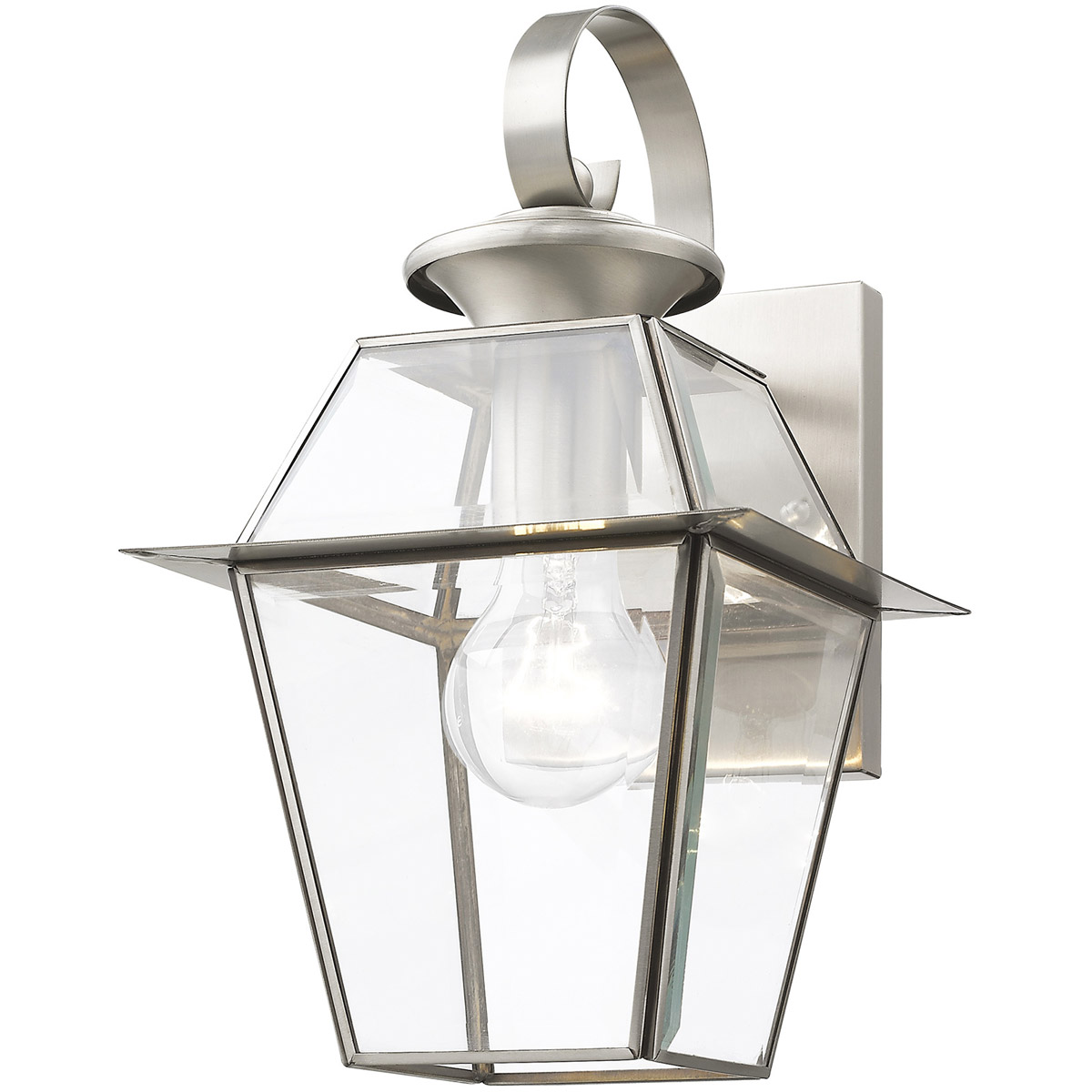Inspired by the historic look and romantic feel of gas-burning lamps, our Westover collection is reminiscent of antique gas lights, which are still popular in Southern cities like Charleston and New Orleans. This solid brass piece features one light behind large panes of clear beveled glass.