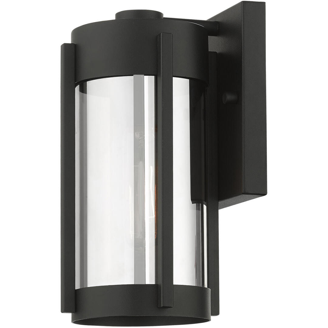The Sheridan outdoor collection has a clean, crisp look and contemporary appeal. This single light stainless steel small wall lantern has a black finish with brushed nickel finish candles and features electrical plated smoke glass.
