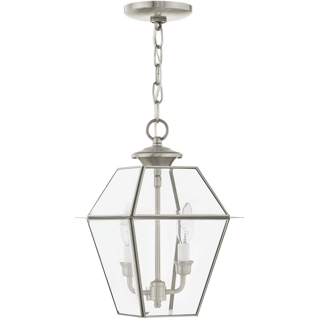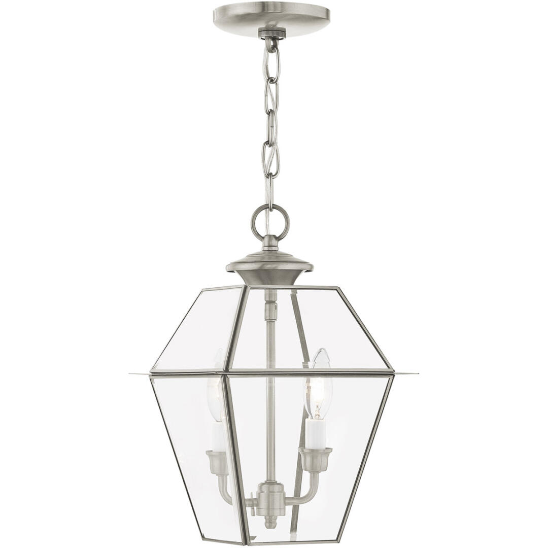 Inspired by the historic look and romantic feel of gas-burning lamps, the Westover collection is reminiscent of antique gas lights still popular in Southern cities like Charleston and New Orleans. This solid brass piece features two lights behind large panes of clear beveled glass.