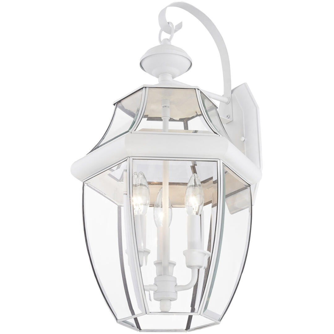 The Monterey outdoor lighting features clean, crisp lines complemented by the graceful curves of beveled glass. Crafted from sturdy solid brass this handsome colonial styling makes this fixture a perfect addition to your outdoor spaces.