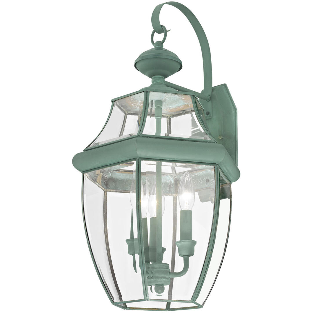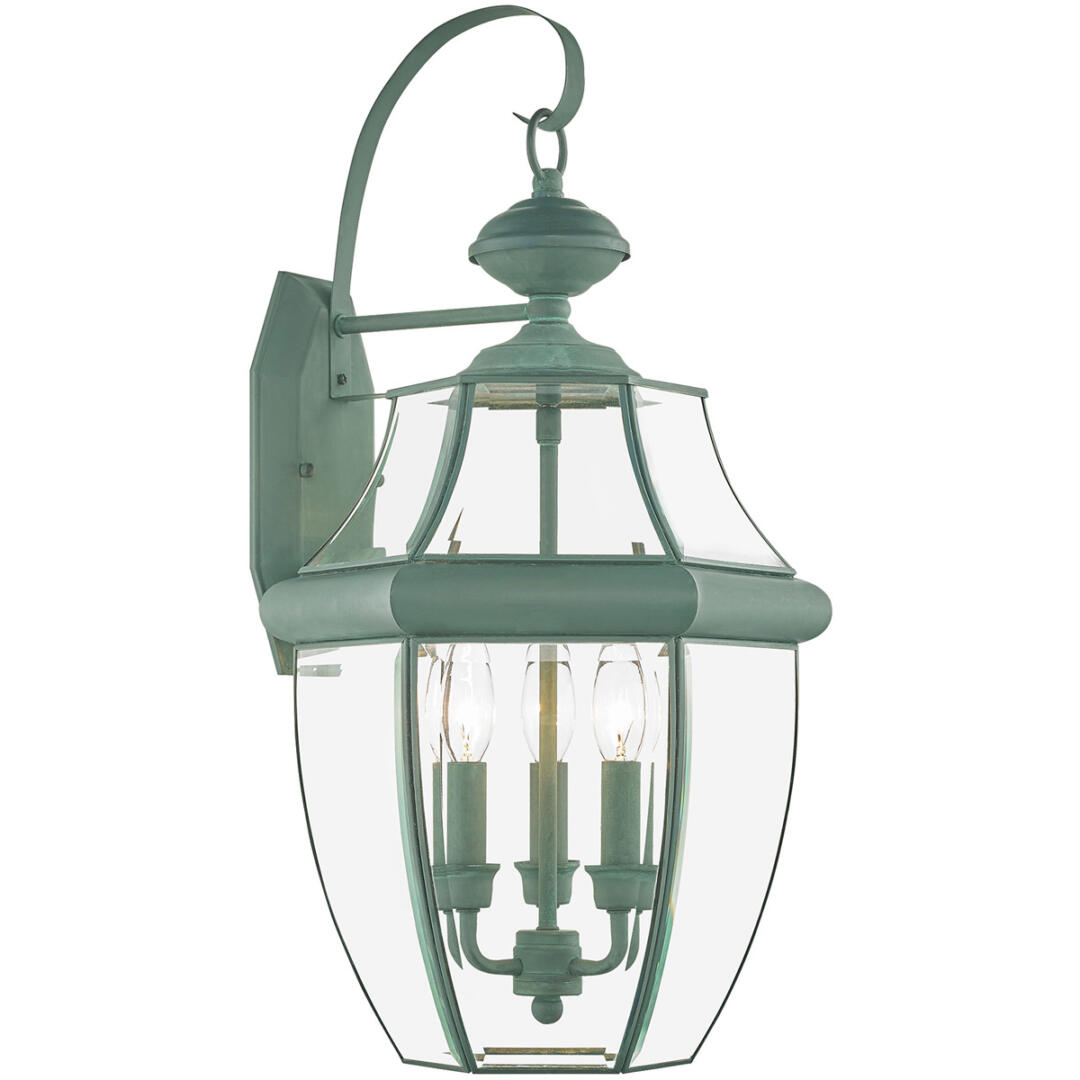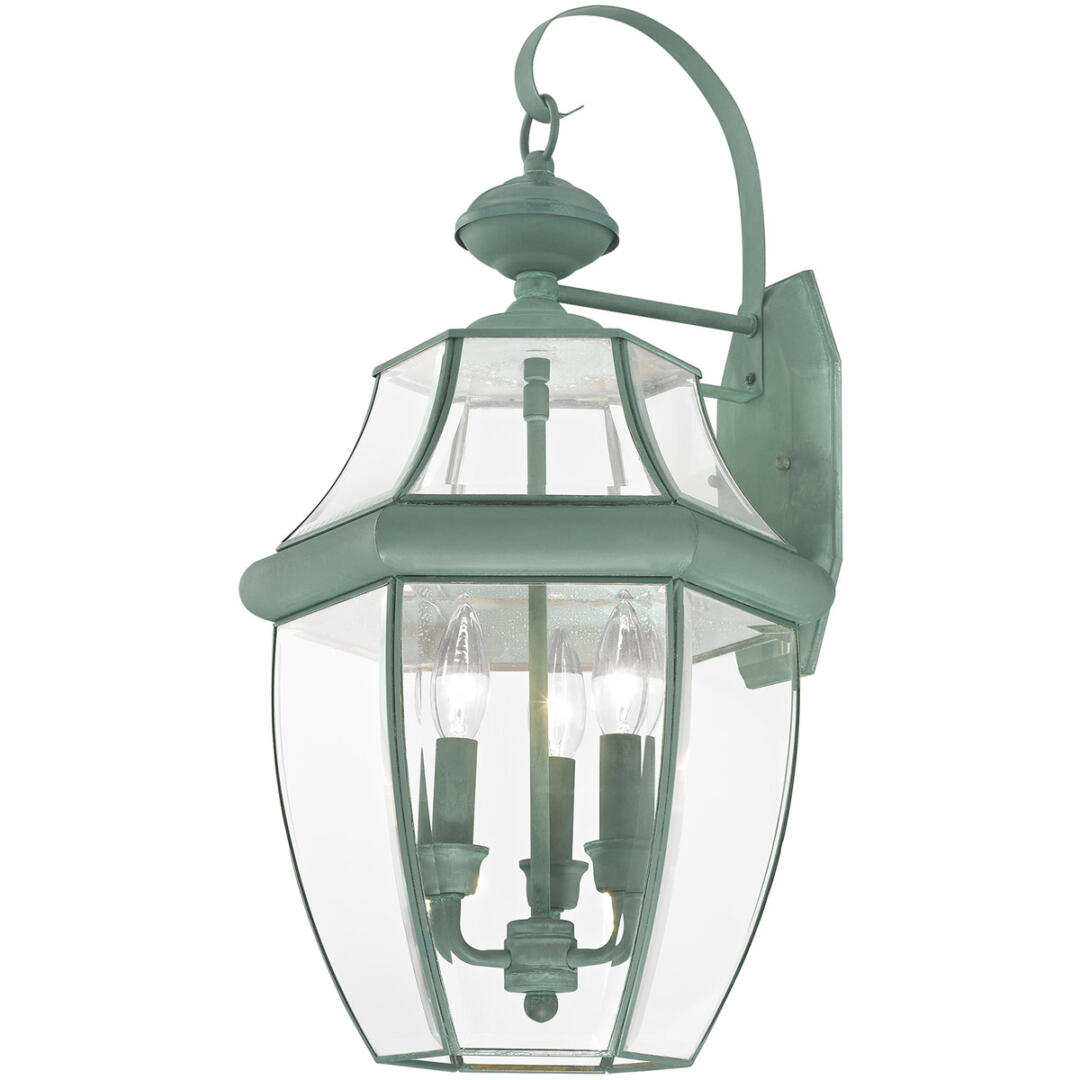 The Monterey outdoor lighting features clean, crisp lines complemented by the graceful curves of beveled glass. Crafted from sturdy solid brass this handsome colonial styling makes this fixture a perfect addition to your outdoor spaces.