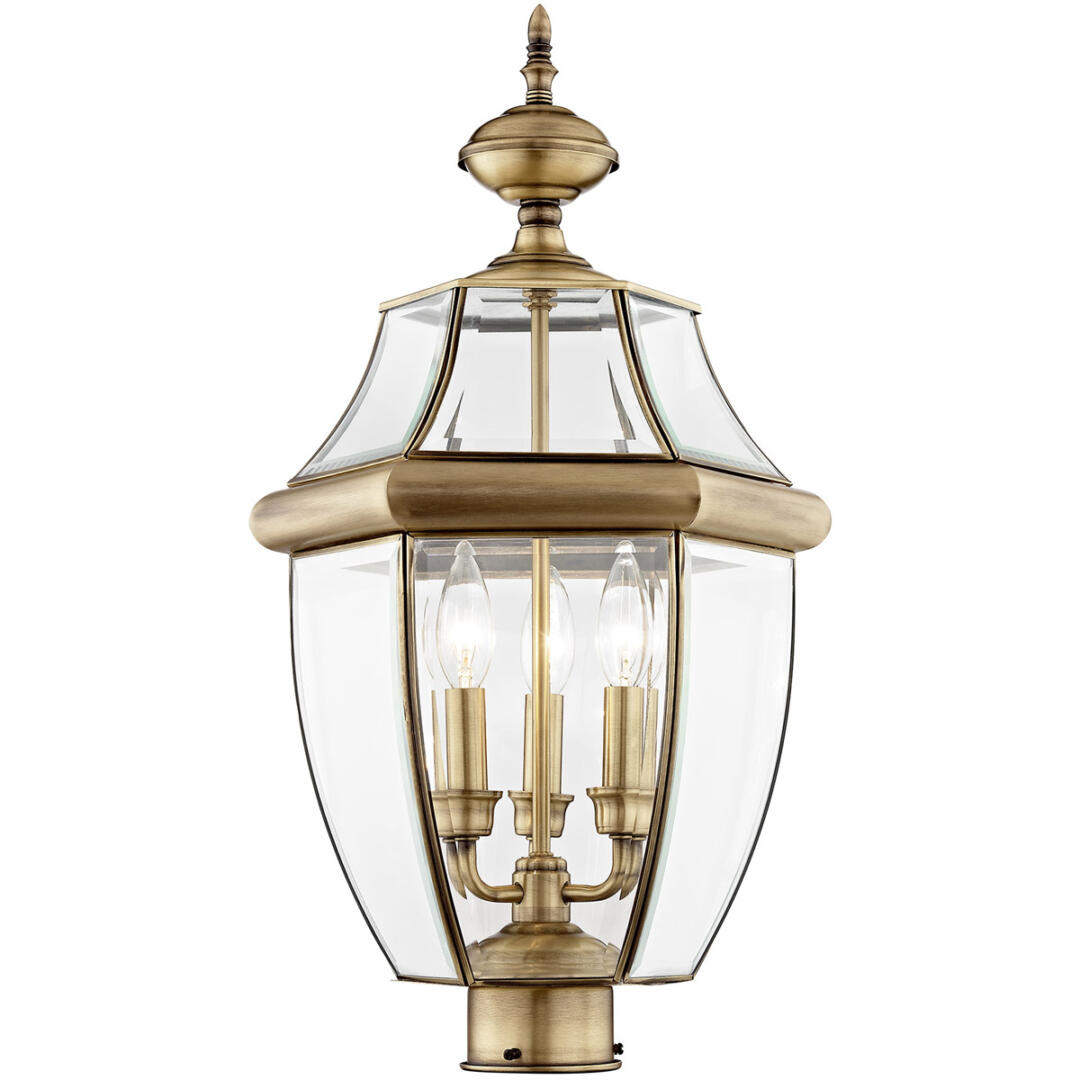 The Monterey outdoor lighting features clean, crisp lines complemented by the graceful curves of beveled glass. Crafted from sturdy solid brass this handsome colonial styling makes this fixture a perfect addition to your outdoor spaces.