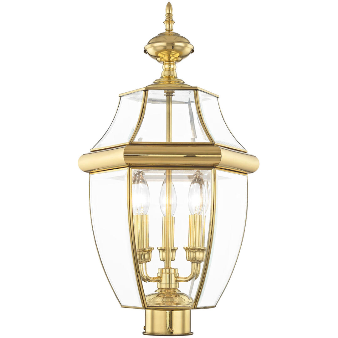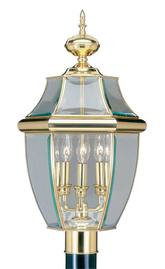 The Monterey outdoor lighting features clean, crisp lines complemented by the graceful curves of beveled glass. Crafted from sturdy solid brass this handsome colonial styling makes this fixture a perfect addition to your outdoor spaces.
