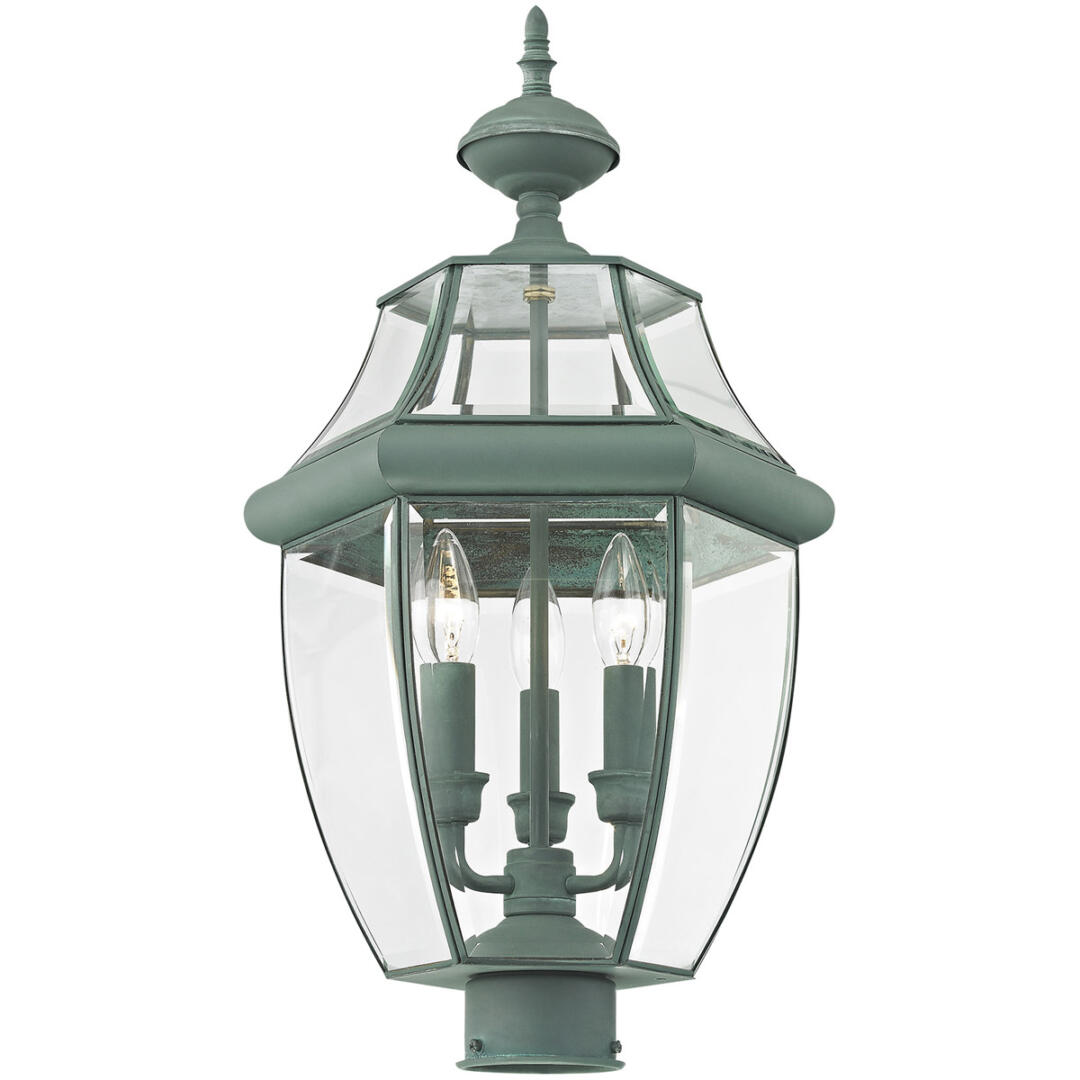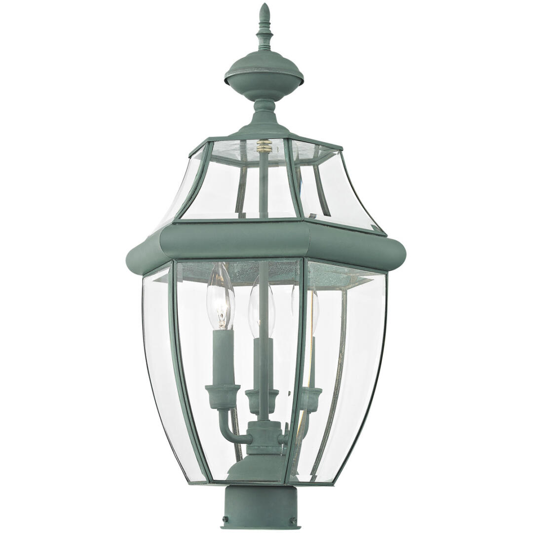 3 Light Verdigris Outdoor Post Lantern Pendant Lighting Fixture with Clear Beveled Glass Shade-Lighting Lumens