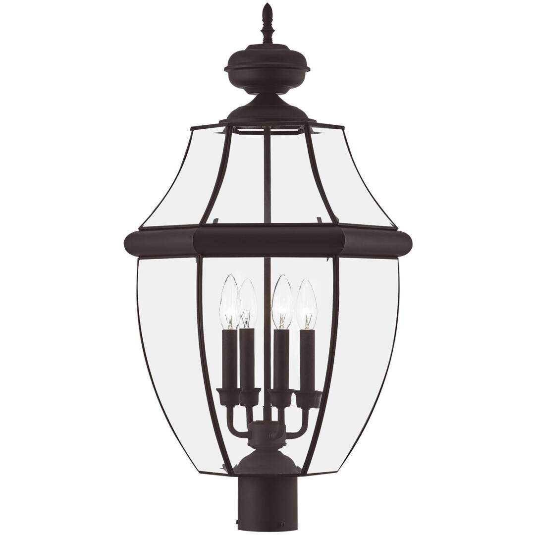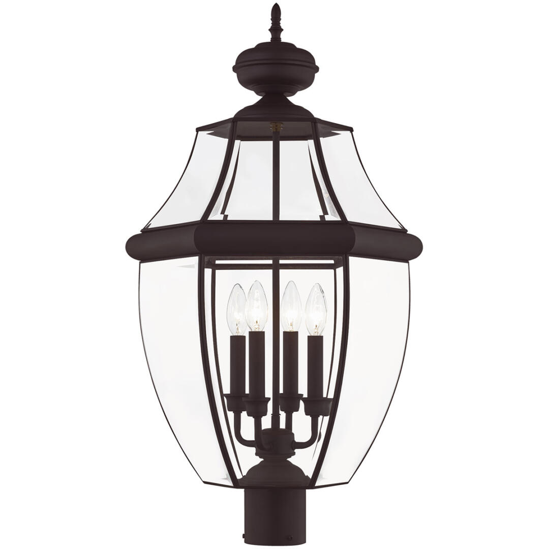 4 Light Bronze Outdoor Post Lantern Pendant Lighting Fixture with Clear Beveled Glass Shade-Lighting Lumens