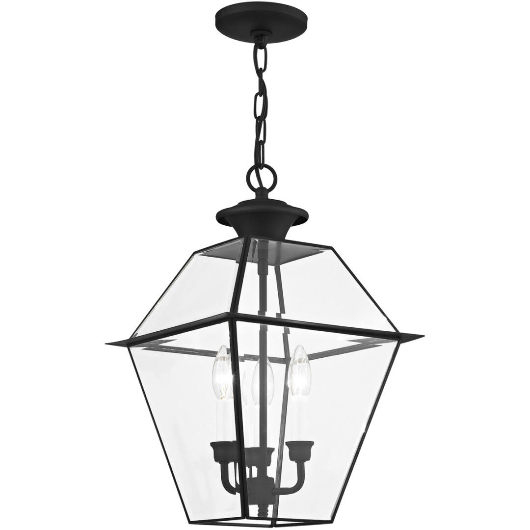 Inspired by the historic look and romantic feel of gas-burning lamps, the Westover collection is reminiscent of antique gas lights still popular in Southern cities like Charleston and New Orleans. This solid brass piece features three lights behind large panes of clear beveled glass.