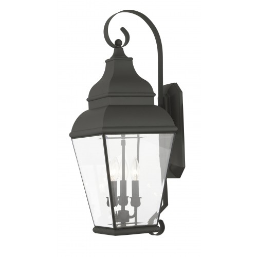 Finished in black with clear beveled glass, this outdoor wall lantern offers plenty of stylish illumination for your home’s exterior.