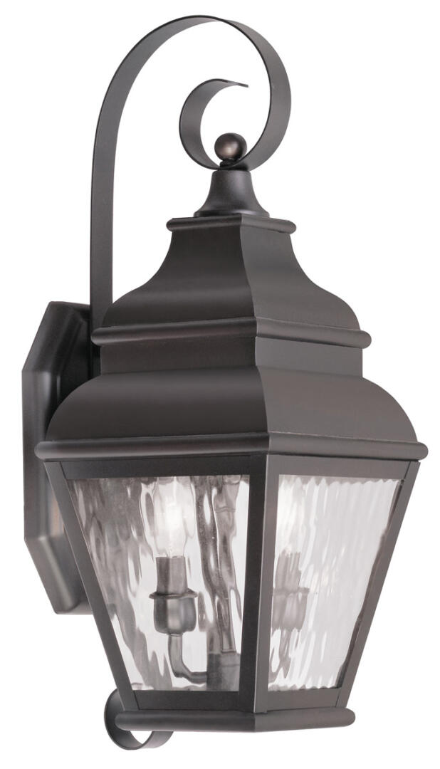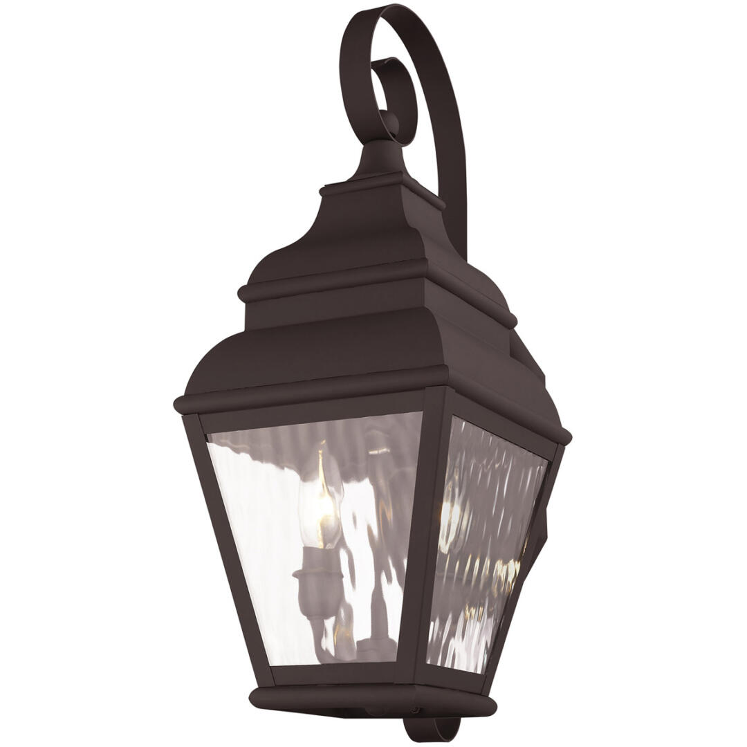 Finished in bronze with clear water glass, this outdoor wall lantern offers plenty of stylish illumination for your home’s exterior.