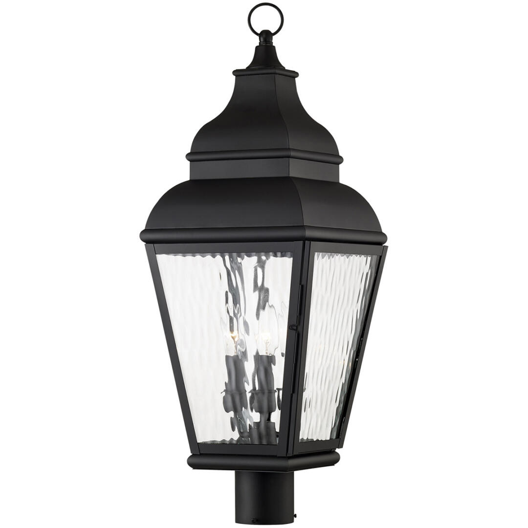 Finished in black with clear water glass, this outdoor wall lantern offers plenty of stylish illumination for your home’s exterior.