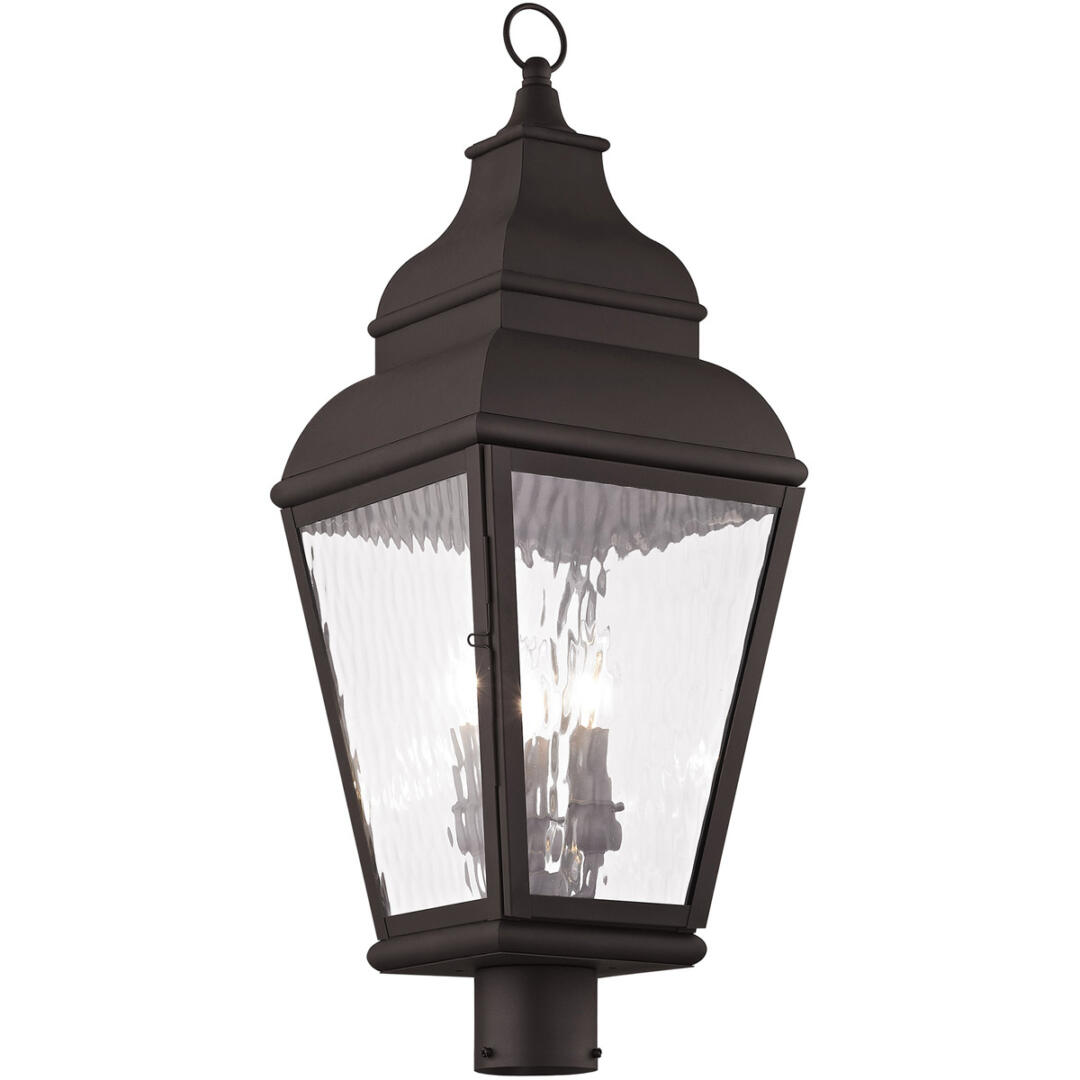 10 inch 3 Light Bronze Outdoor Post Lantern Pendant Lighting Fixture with Clear Water Glass Shade-Lighting Lumens