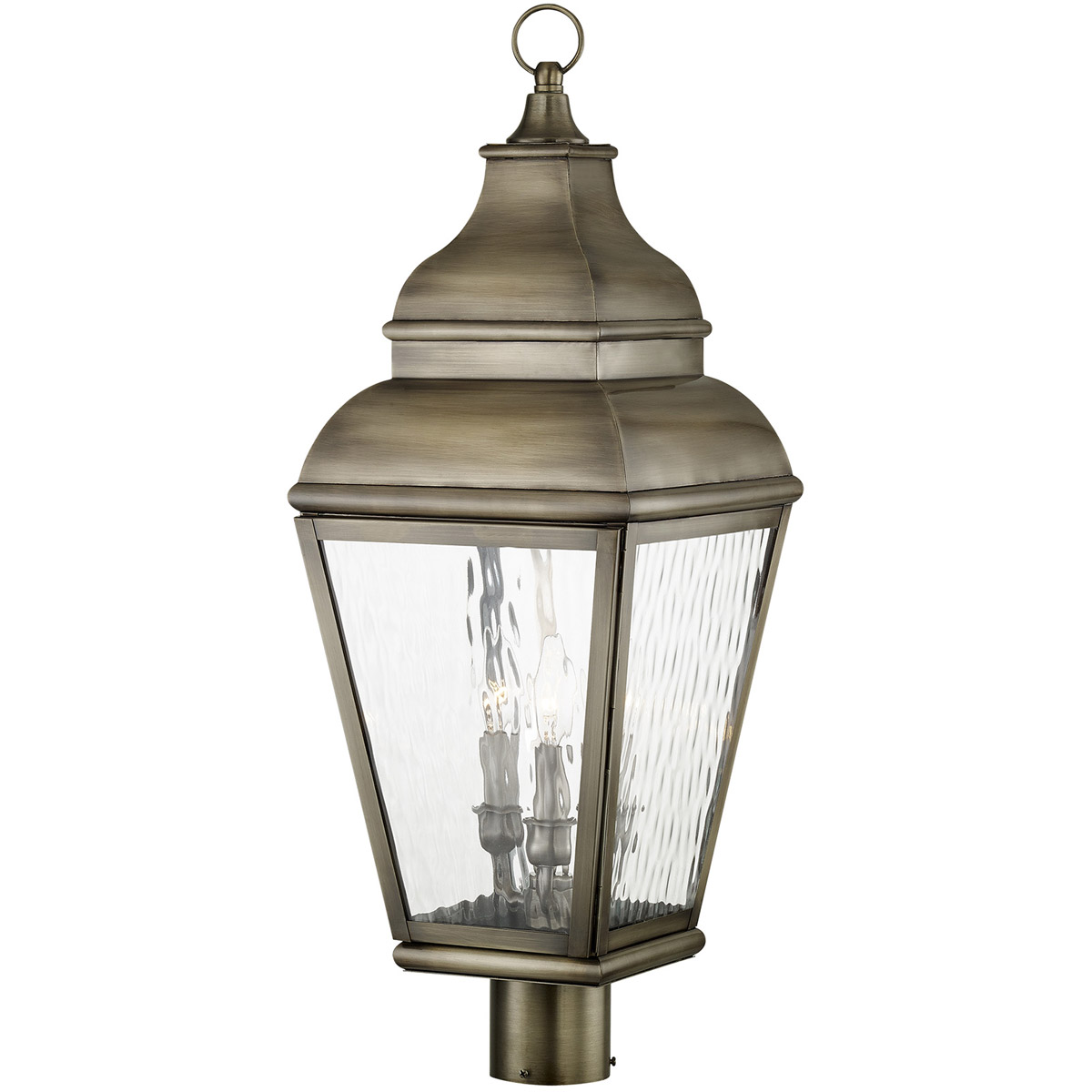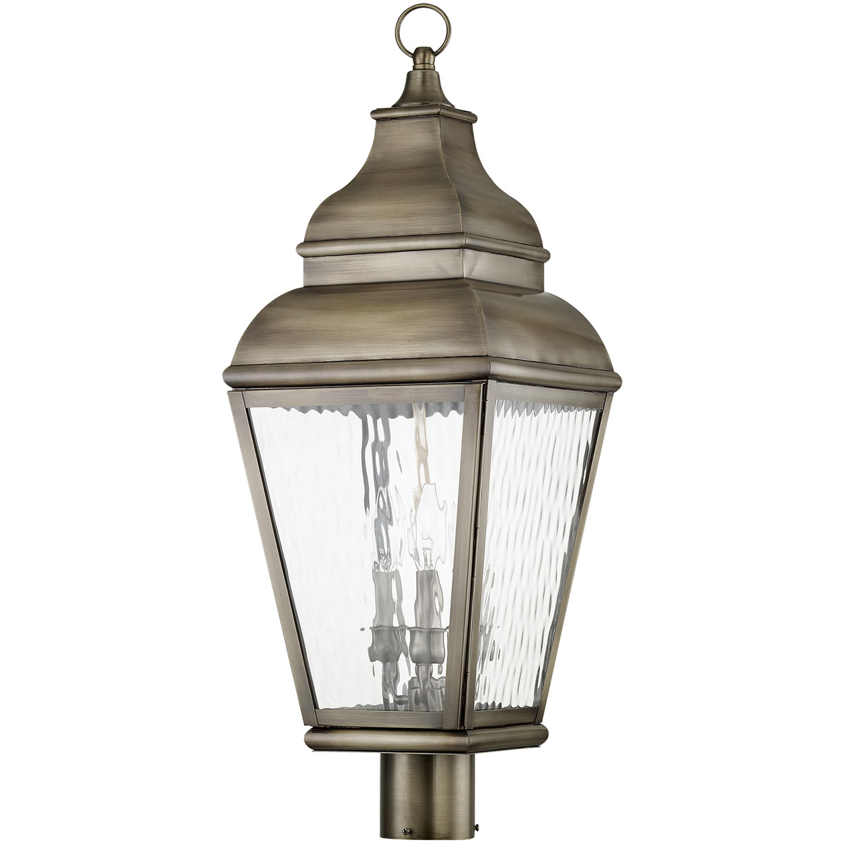 Finished in vintage pewter with clear water glass, this outdoor wall lantern offers plenty of stylish illumination for your home’s exterior.