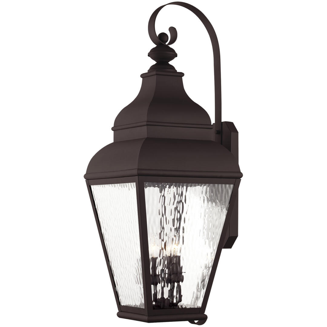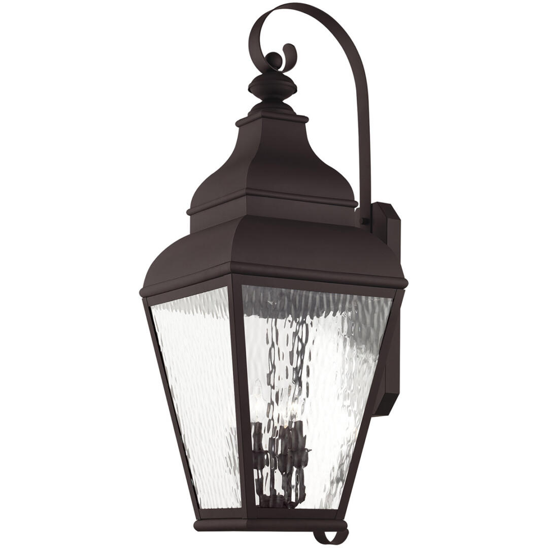 Finished in black with clear water glass, this outdoor wall lantern offers plenty of stylish illumination for your home’s exterior.