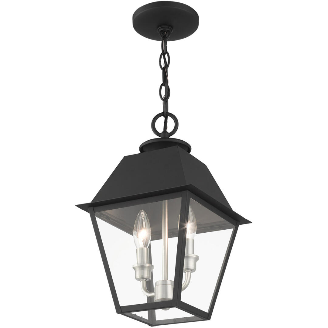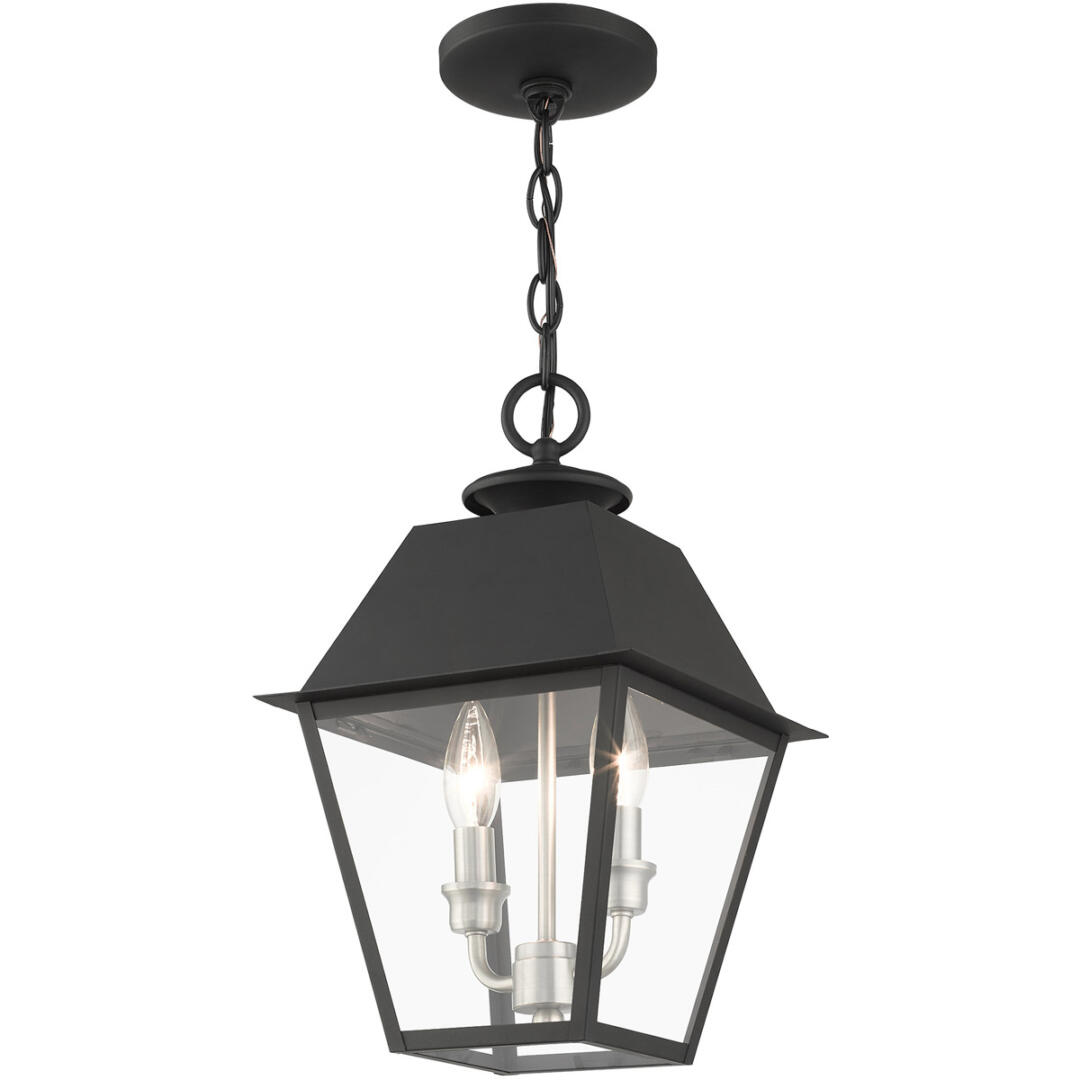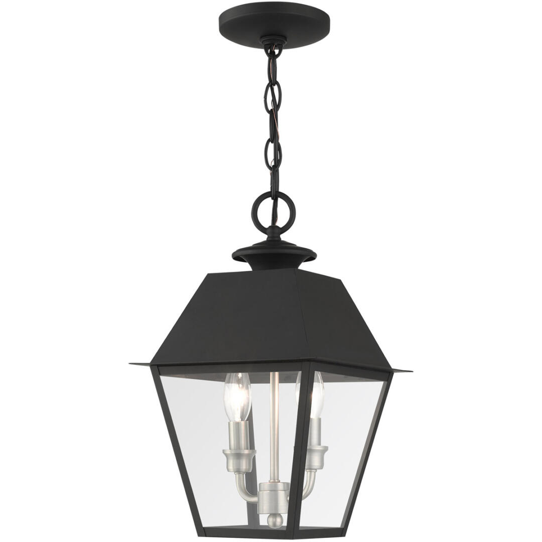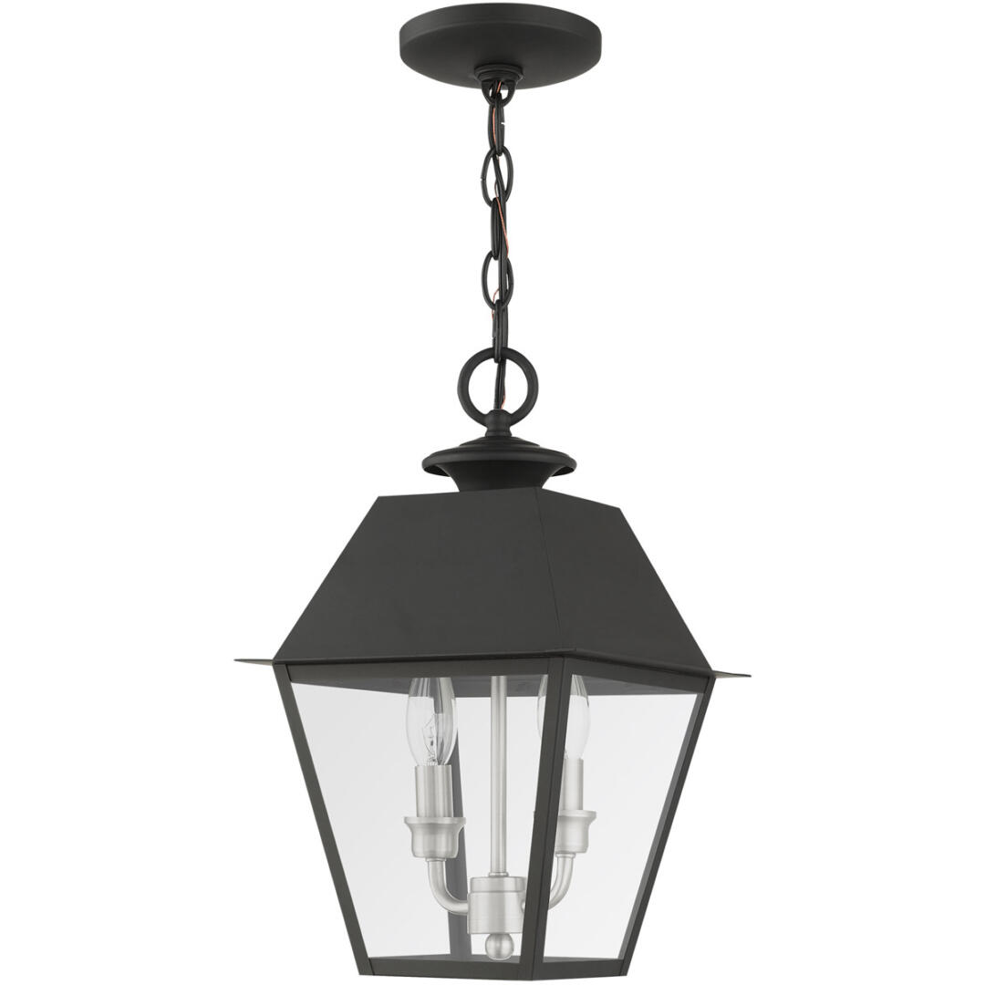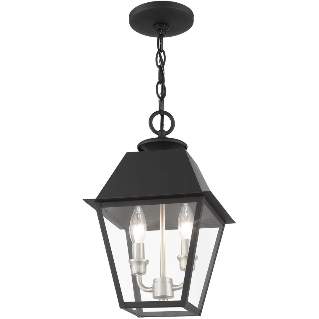 With its appealing black finish and clear glass, the stunning Wentworth collection will make an elegant addition to any outdoor space. Formed from solid brass & traditionally inspired, this two-light outdoor medium pendant is perfect for your entry way. Combining superb craftsmanship and affordable price, this fixture is sure to be a timeless addition to your home.