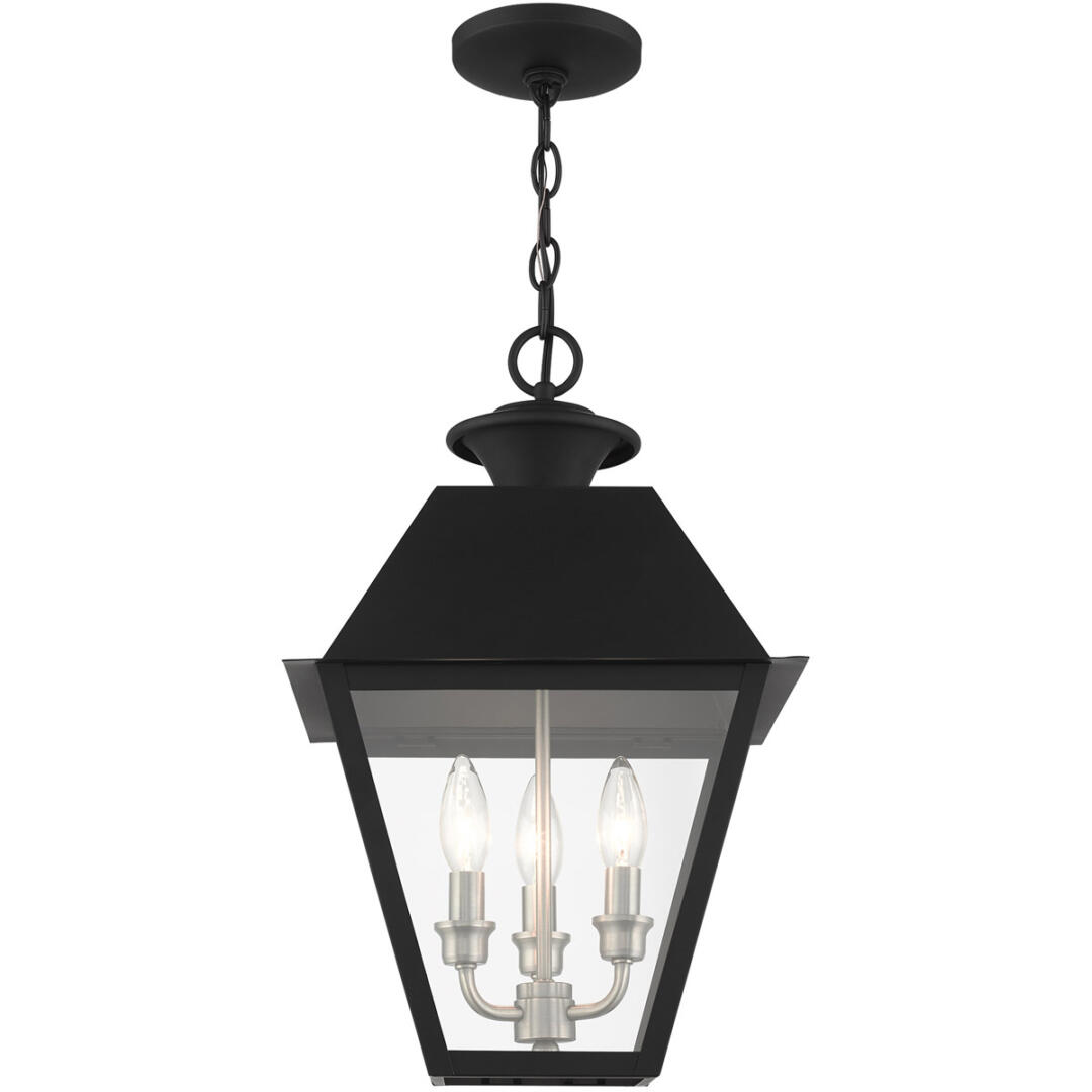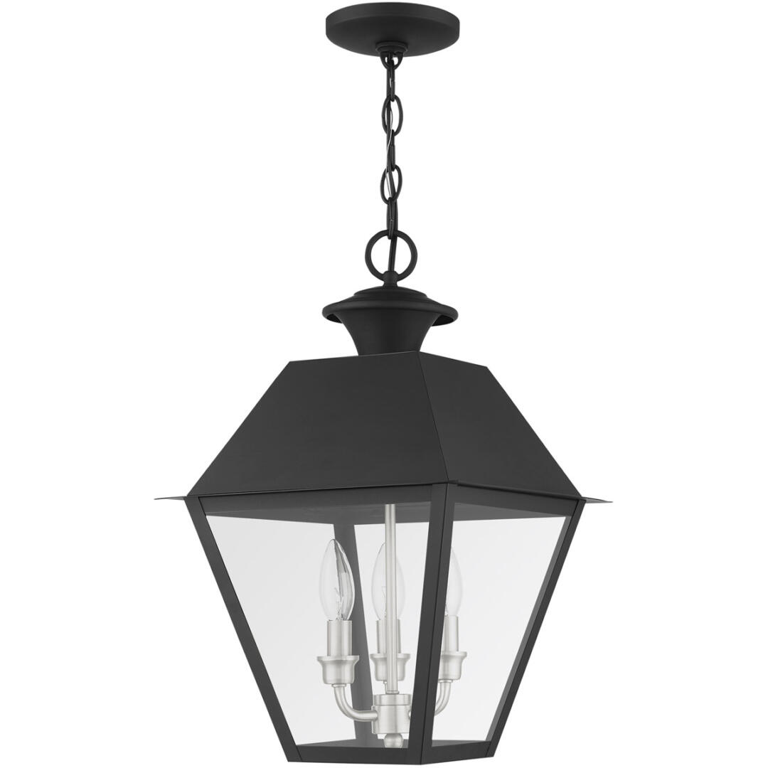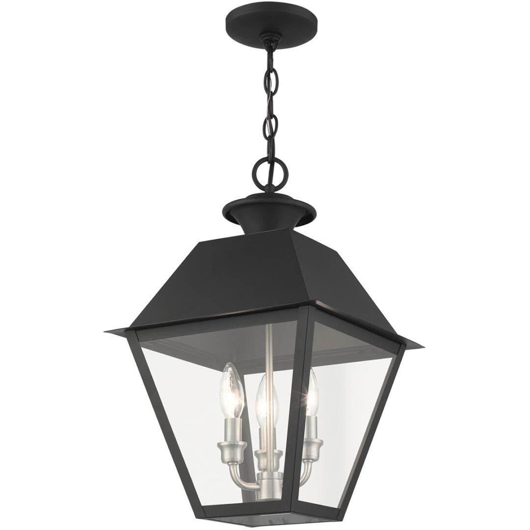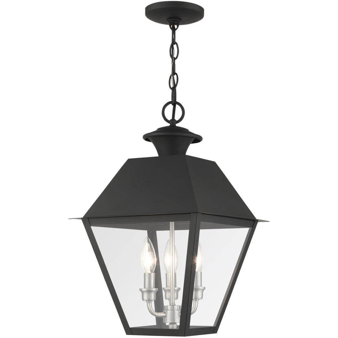 With its appealing black finish and clear glass, the stunning Wentworth collection will make an elegant addition to any outdoor space. Formed from solid brass & traditionally inspired, this three-light outdoor large pendant is perfect for your entry way. Combining superb craftsmanship and affordable price, this fixture is sure to be a timeless addition to your home.