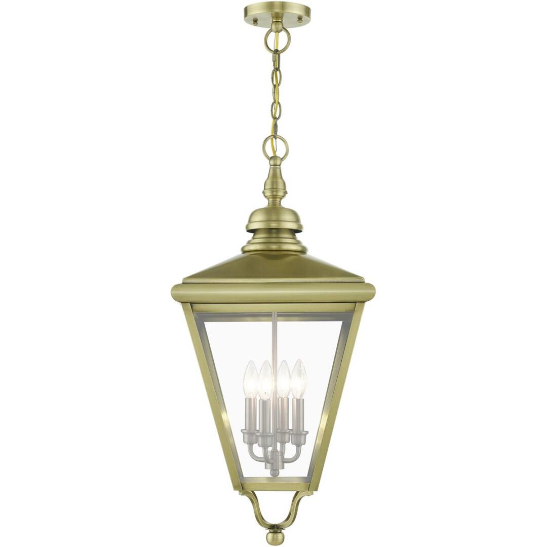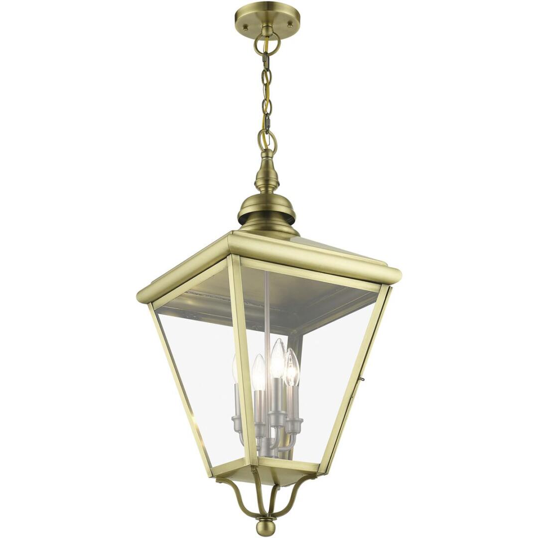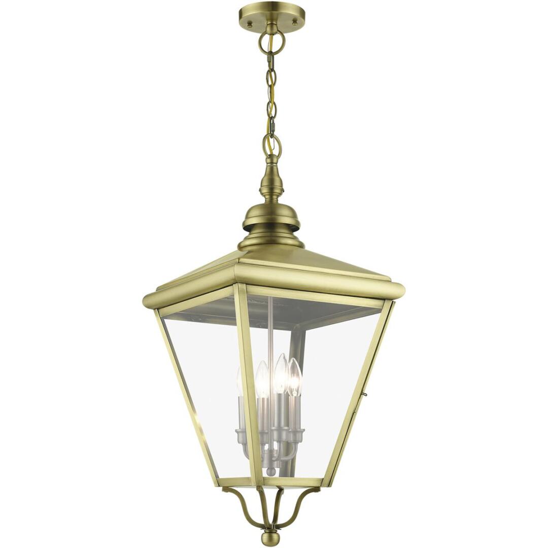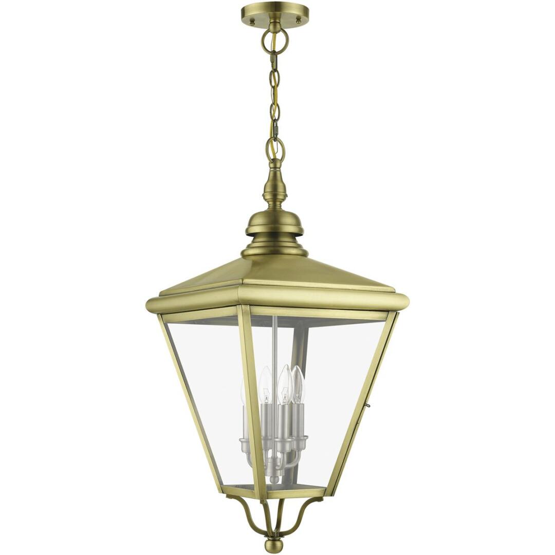 The stylish antique brass finish outdoor Adams extra large pendant lantern is a great way to update your home’s exterior decor. Flat metal curved arms attach to the solid brass decorative housing while clear glass shows off the brushed nickel finish cluster.