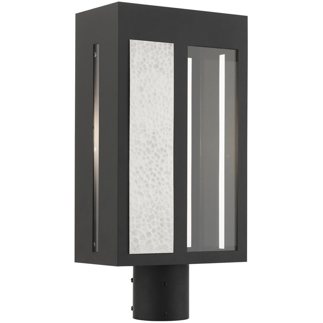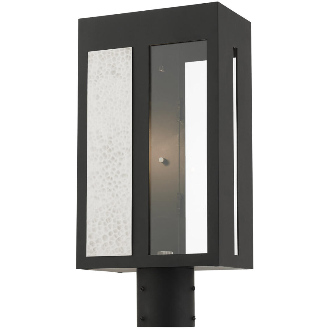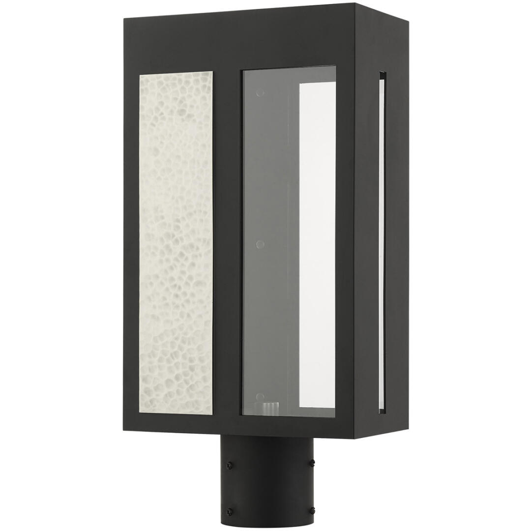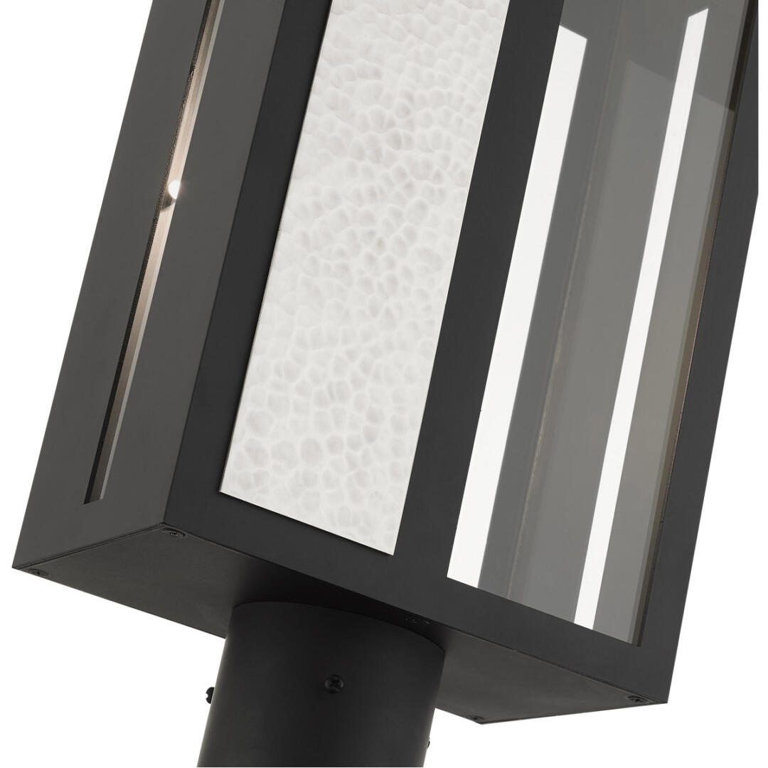 Looking for something modern and fresh for your home exterior? The Lafayette collection will meet and exceed your expectations. It is adorned with exceptional and sophisticated details such as hammered polished nickel panels set in a black finish fixture frame and clear glass. This large one-light post top lantern creates a stylish and unique appearance. Its streamlined hand crafted solid brass frame construction will complement almost any modern or contemporary luxurious home exterior.