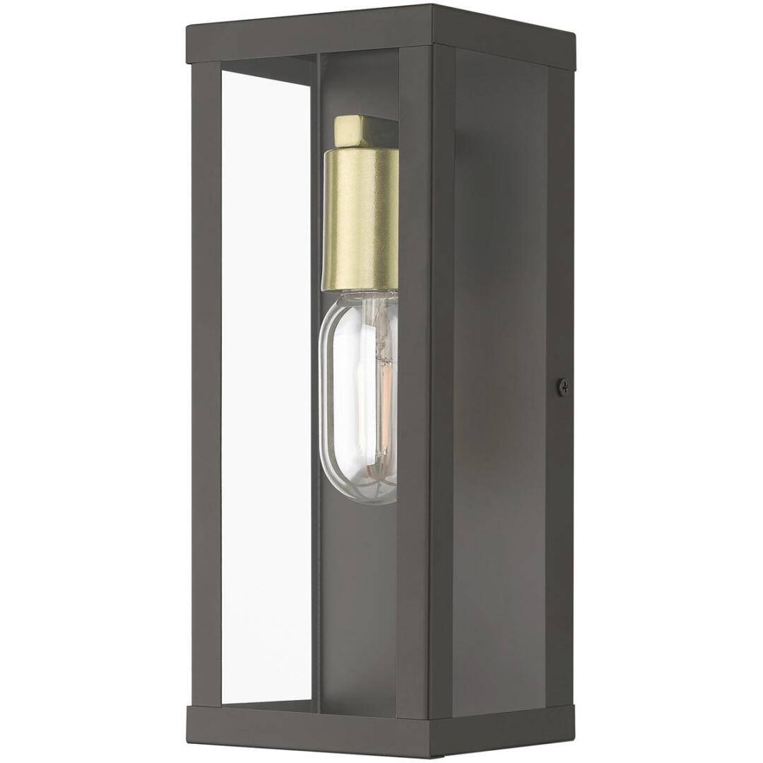Made of stainless steel, the charming Gaffney bronze finish outdoor wall lantern has a versatile look that can be placed almost anywhere. The antique gold finish accents & clear glass add a traditional touch to the clean, transitional-contemporary lines.