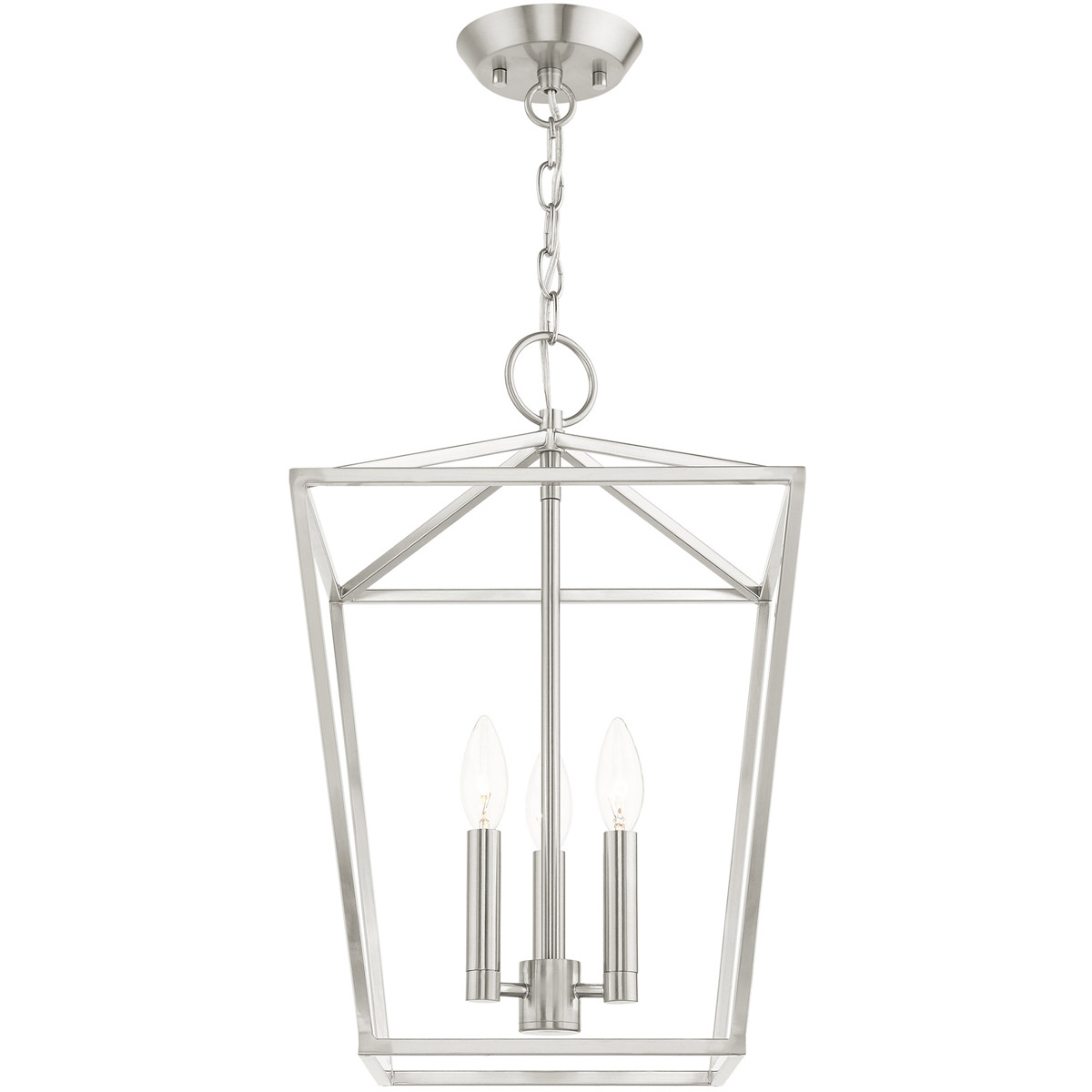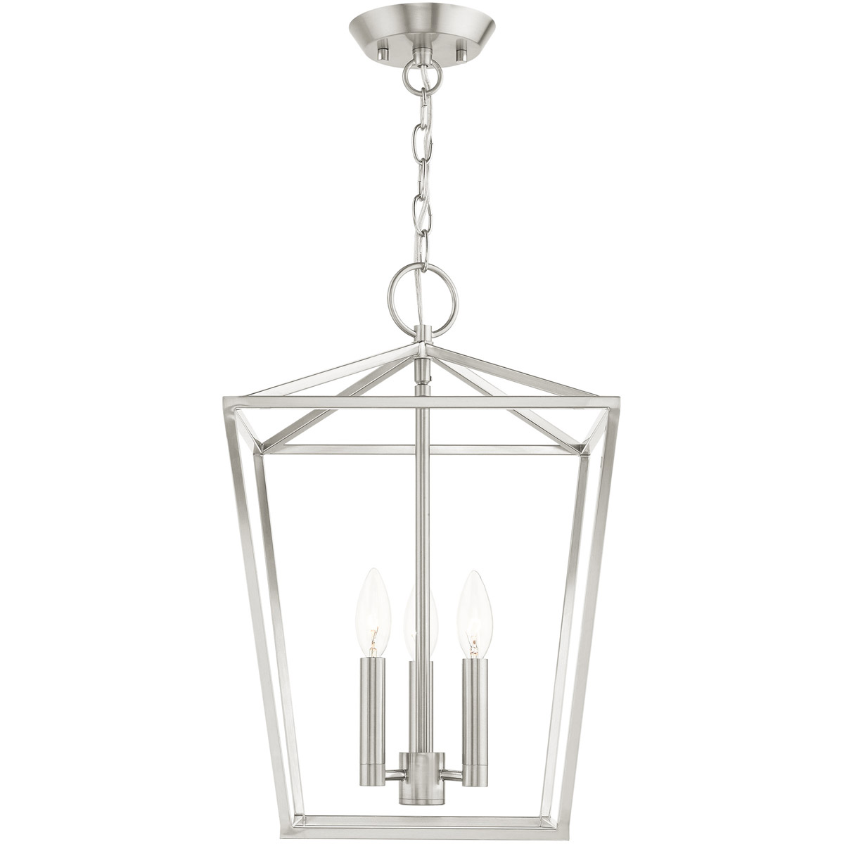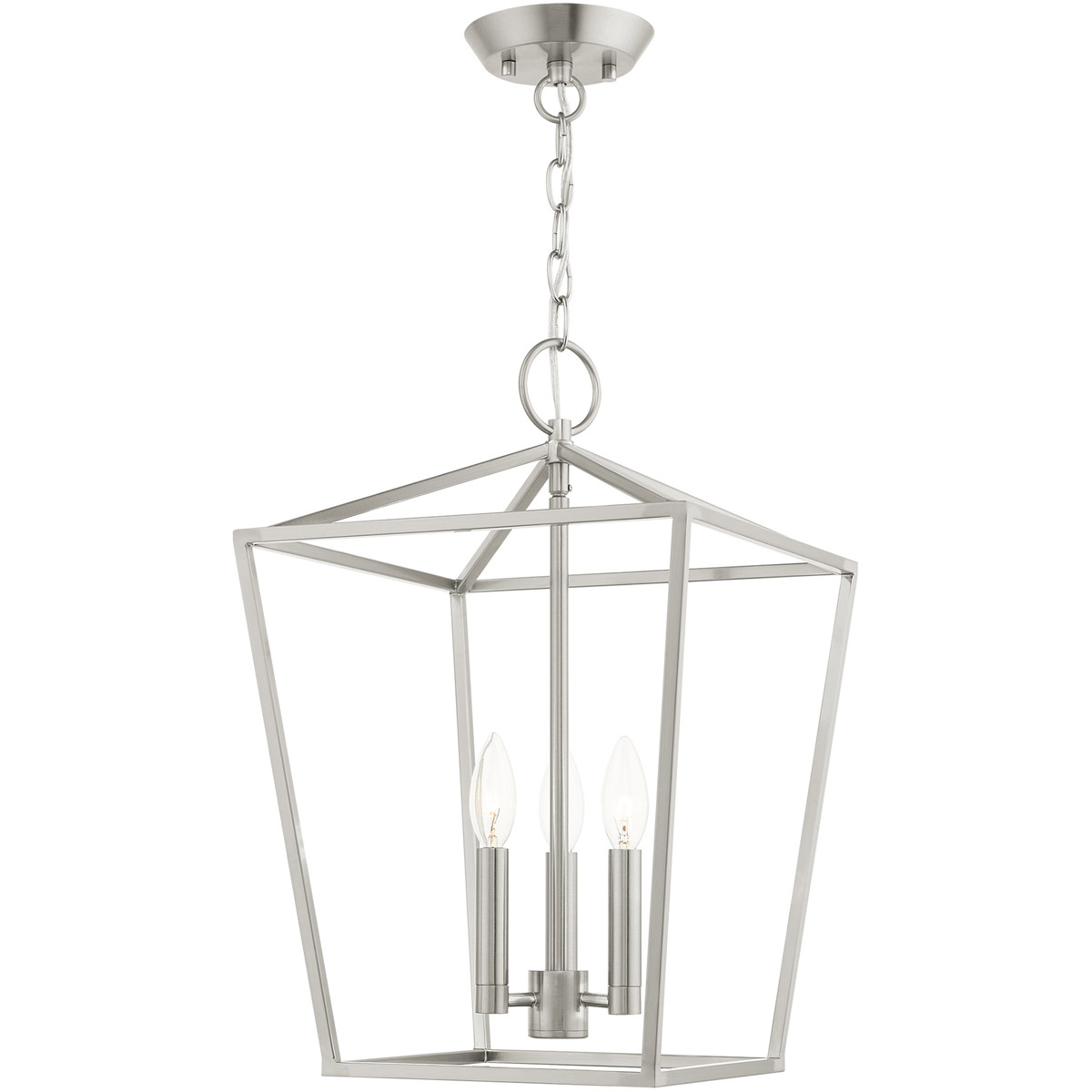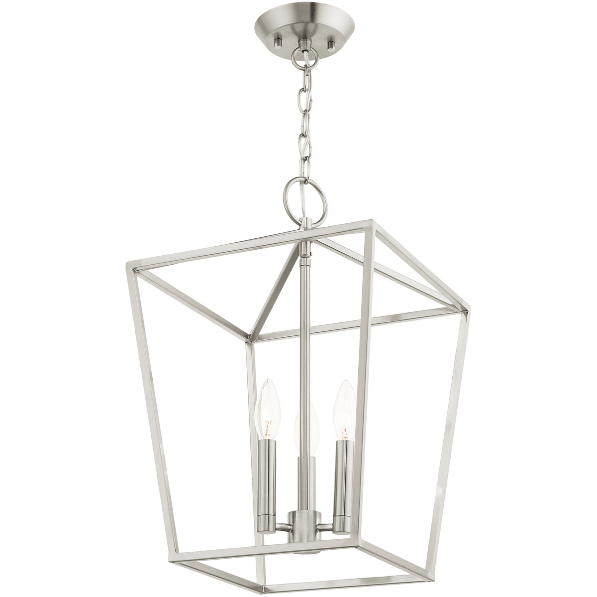 The Devone collection hints at a casual vibe. This three light square frame lantern is shown in a brushed nickel finish. It will be a great feature in your modern loft or cabin as well as any transitional style interior.