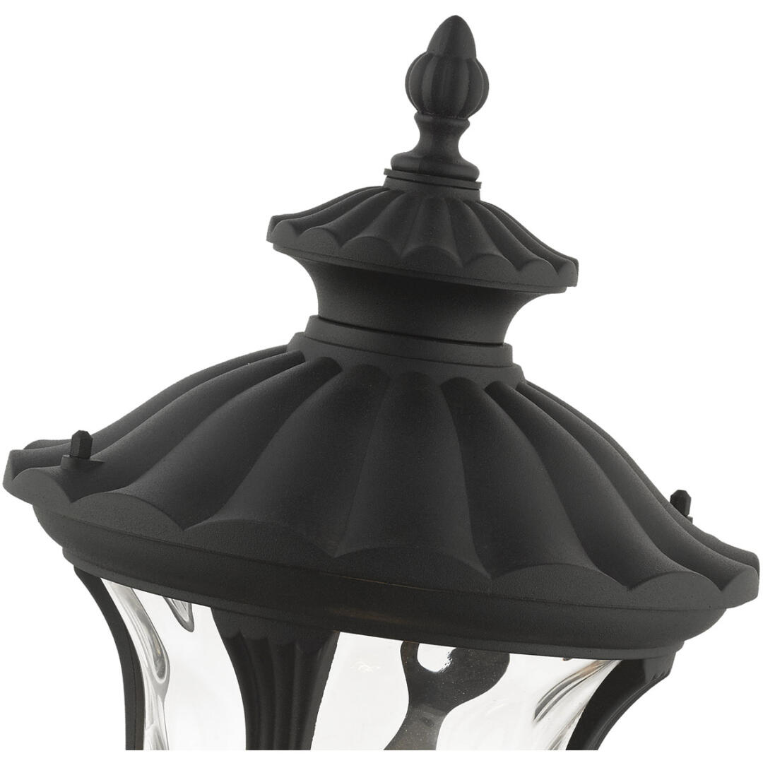 From the Oxford outdoor lantern collection, this traditional cast aluminum single-light small post top lantern design will add curb appeal to any home. It features handsome, antique styling and decorative elements. Clear water glass casts an appealing light and lends to its vintage charm. The well-crafted ornamental details are all finished in a textured black. With superb craftsmanship and affordable price, this fixture is sure to tastefully indulge your senses.