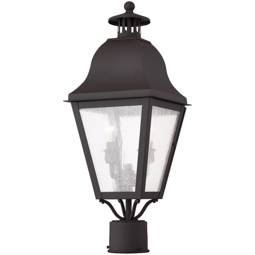 10.5 inch 3 Light Antique Brass Post-Top Lantern Pendant Lighting Fixture with Seeded Glass Shade-Lighting Lumens