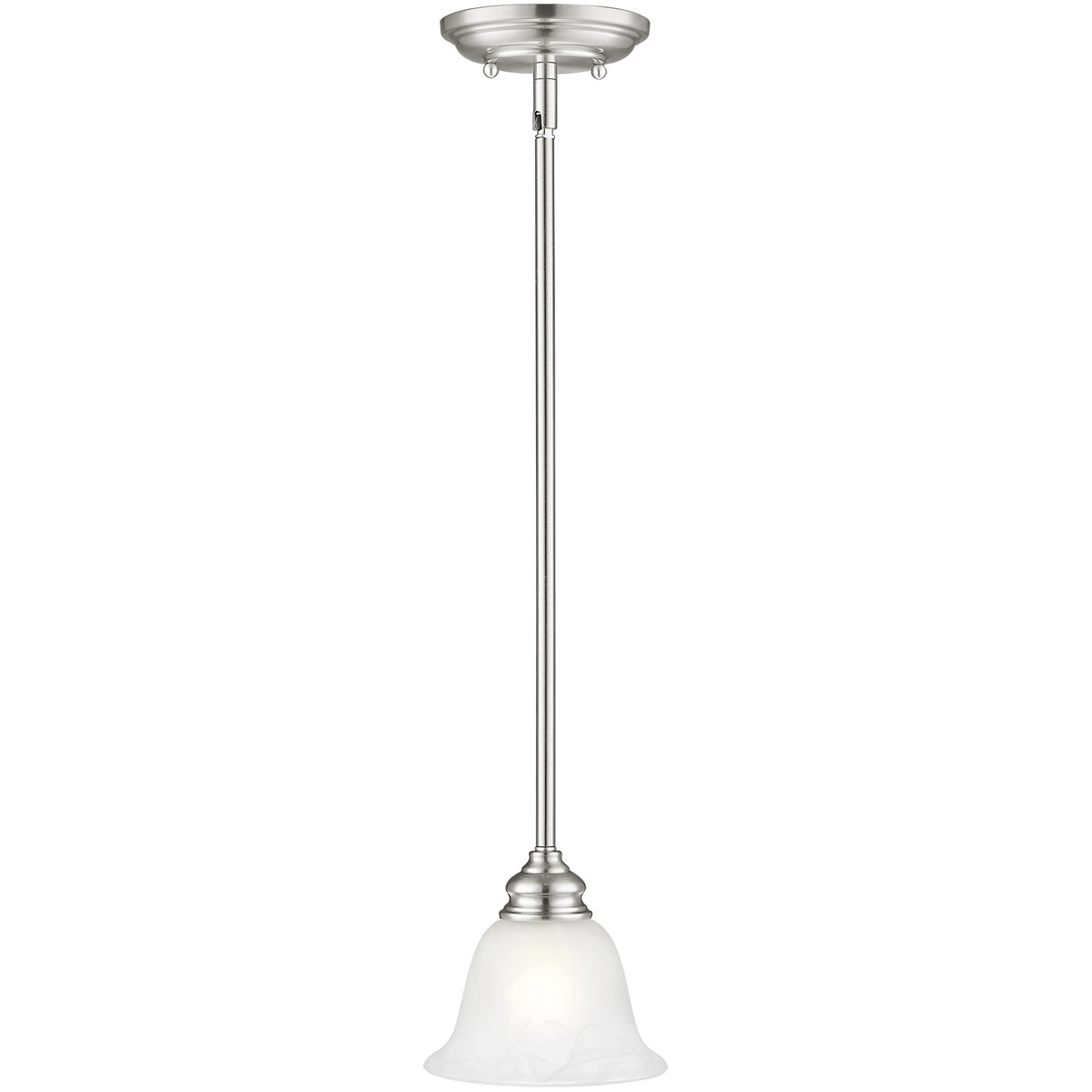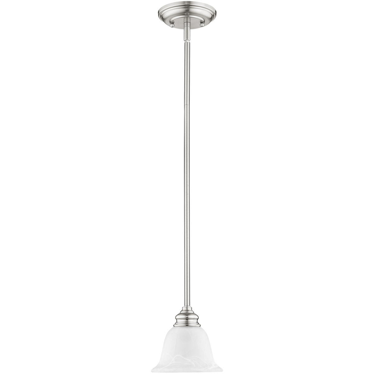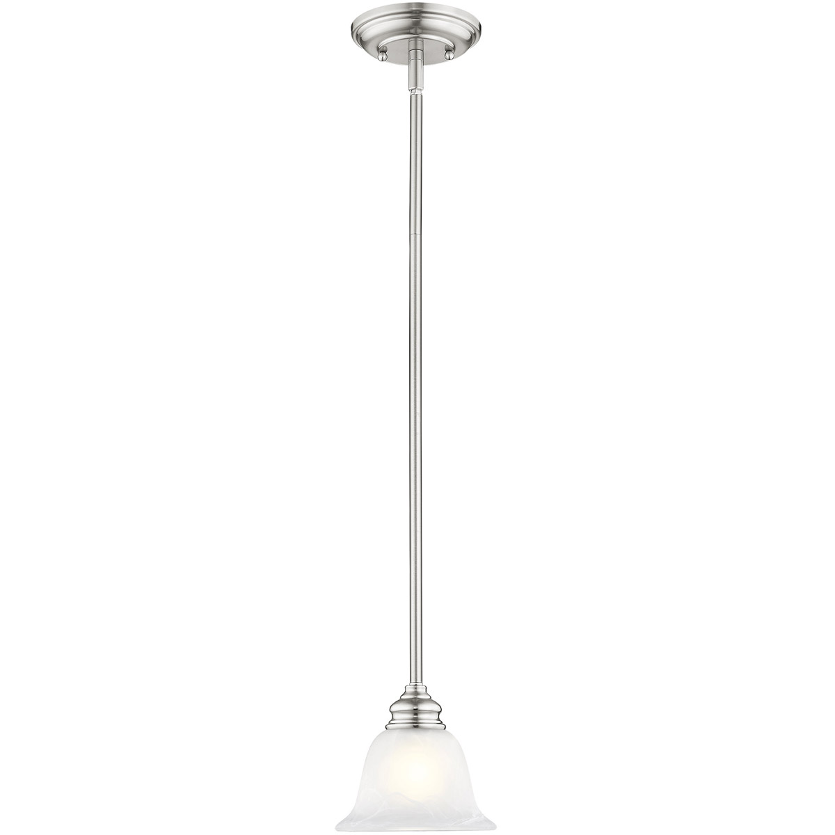 1 Light Brushed Nickel Mini Pendant with White Alabaster Glass Shade-Lighting Lumens