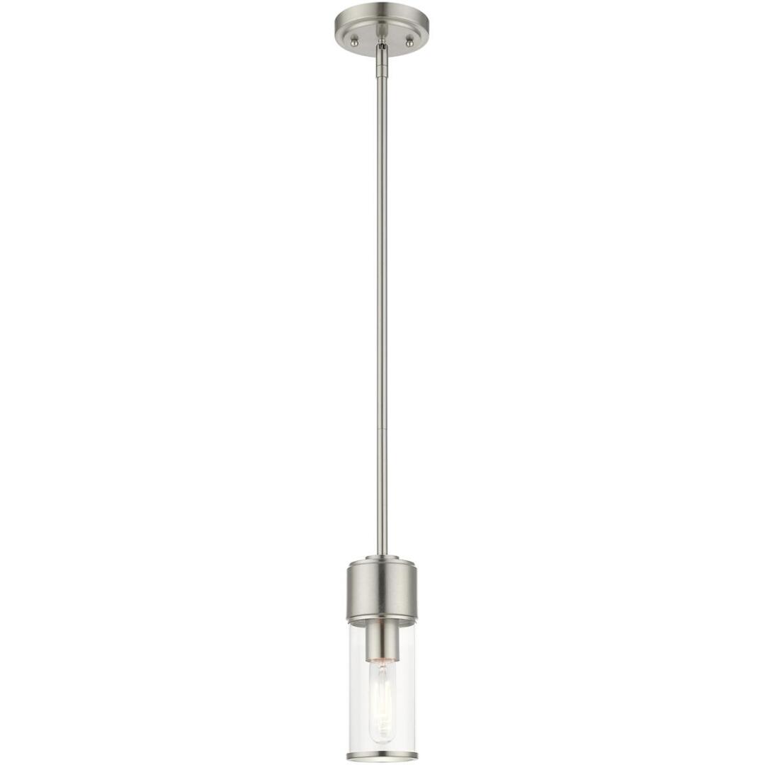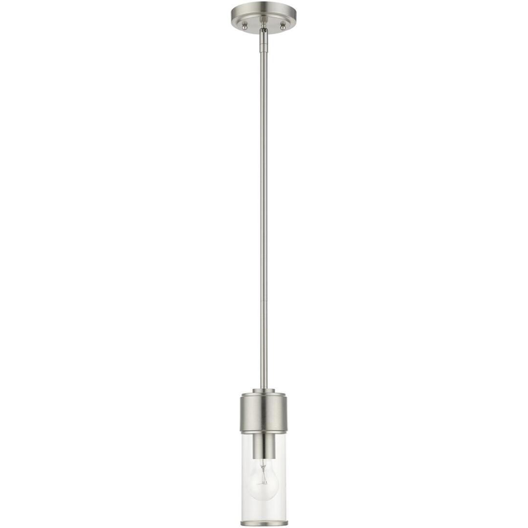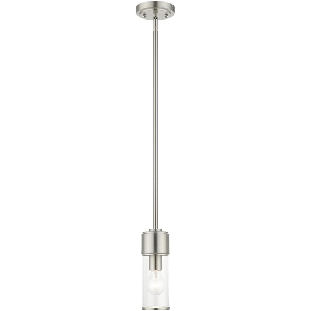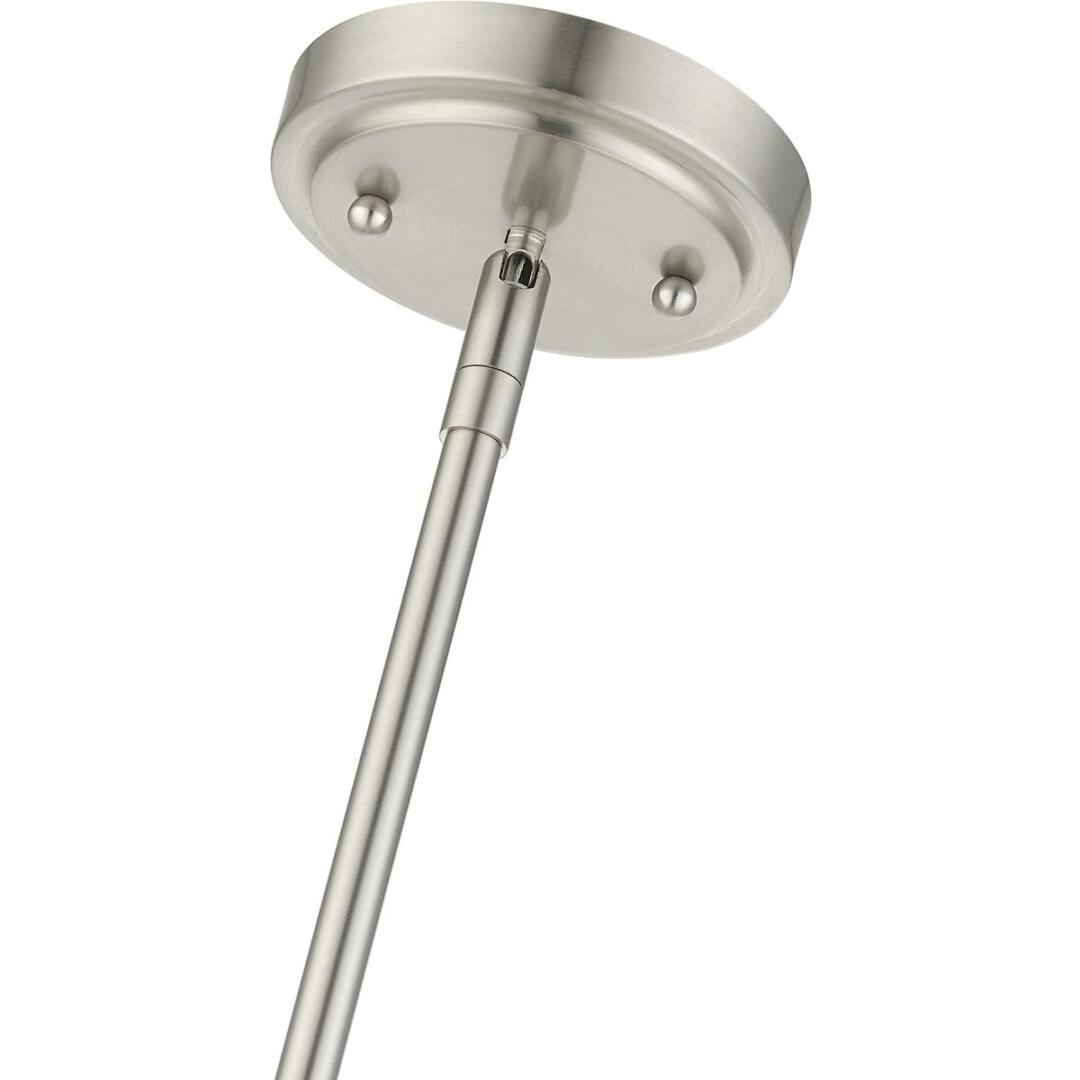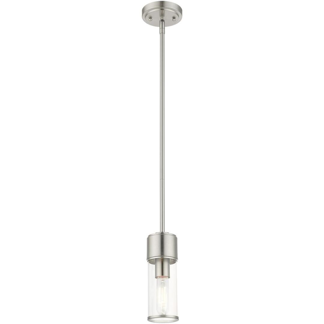 The stunning Quincy mini pendant features a brushed nickel finish with clear glass. This sleek design will brighten up counters, dining areas, and more.