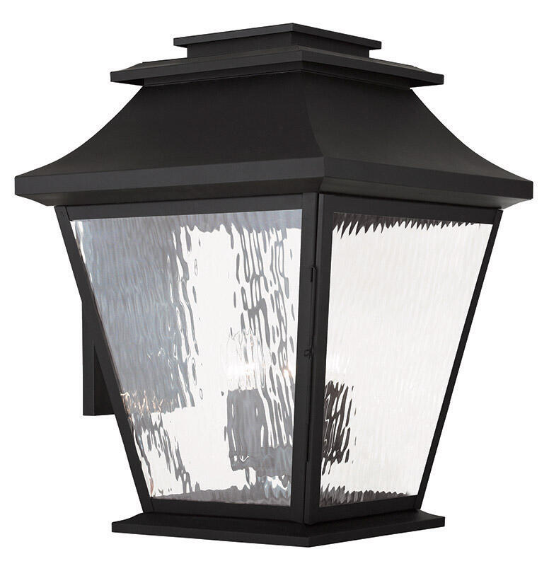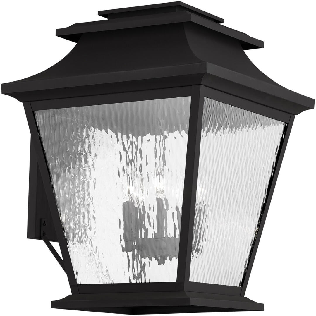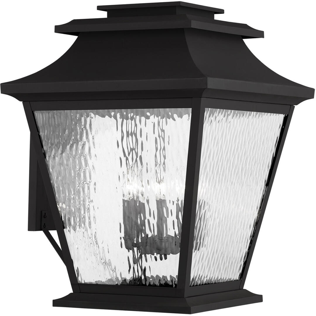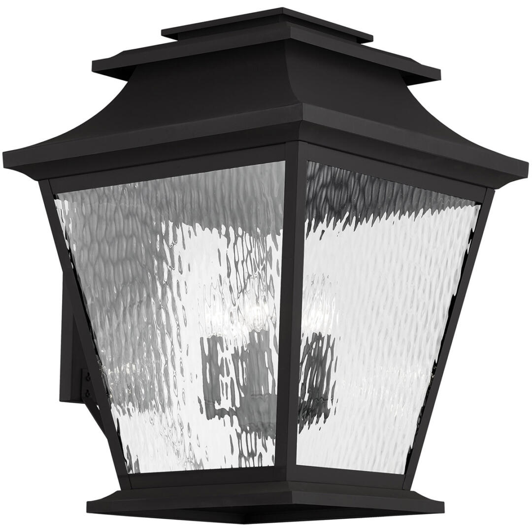 14 inch 4 Light Black Outdoor Wall Lantern Pendant Lighting Fixture with Clear Water Glass Shade-Lighting Lumens