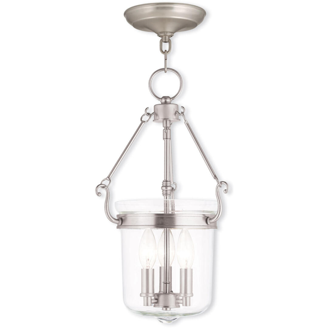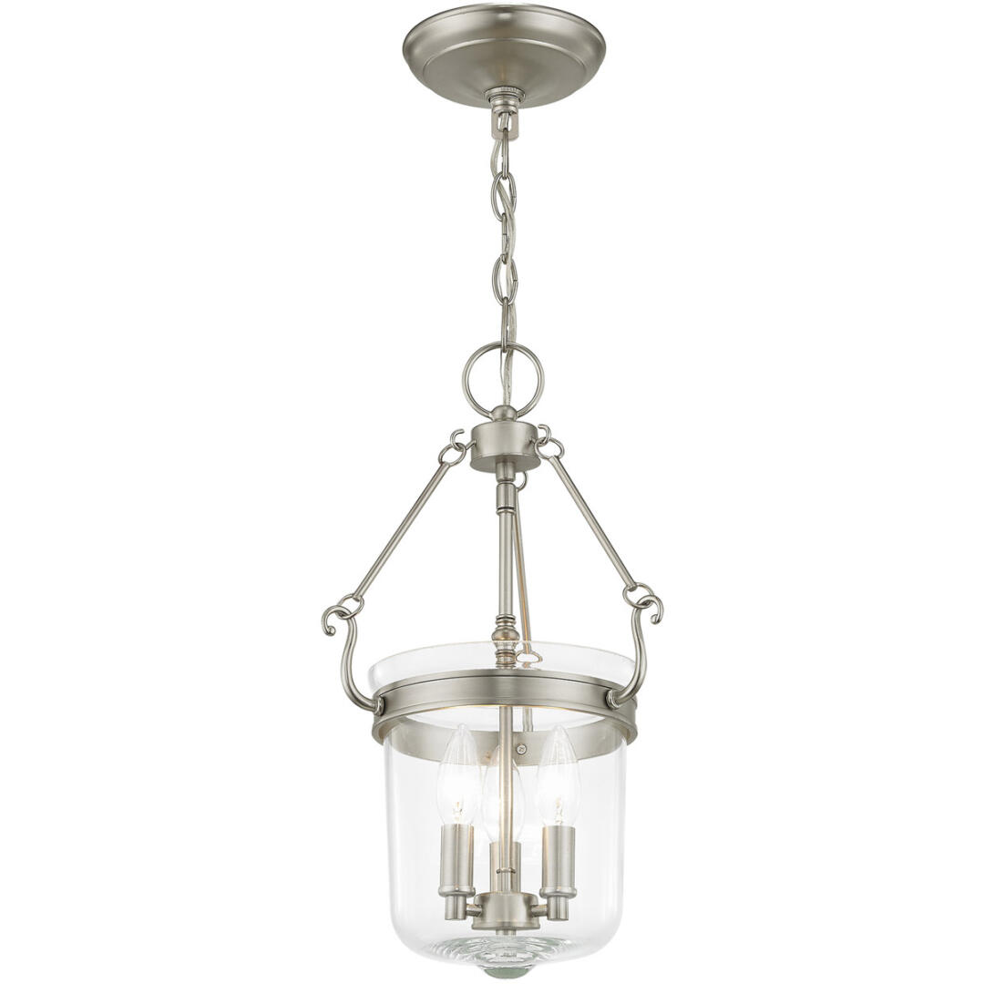 3 Light Brushed Nickel Pendant light Hanging Light Fixture with Hand Crafted Clear Glass Shade-Lighting Lumens